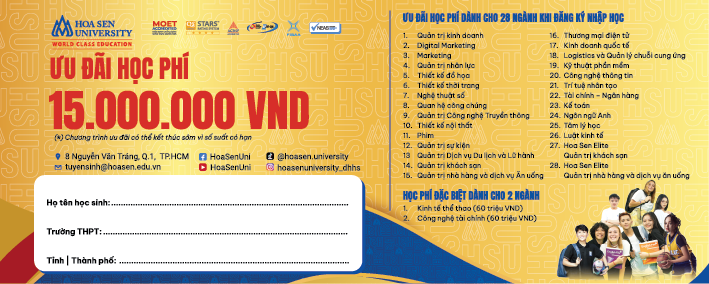 Email: tuyensinh@hoasen.edu.vn – Website: hoasen.edu.vn/tuyensinh/