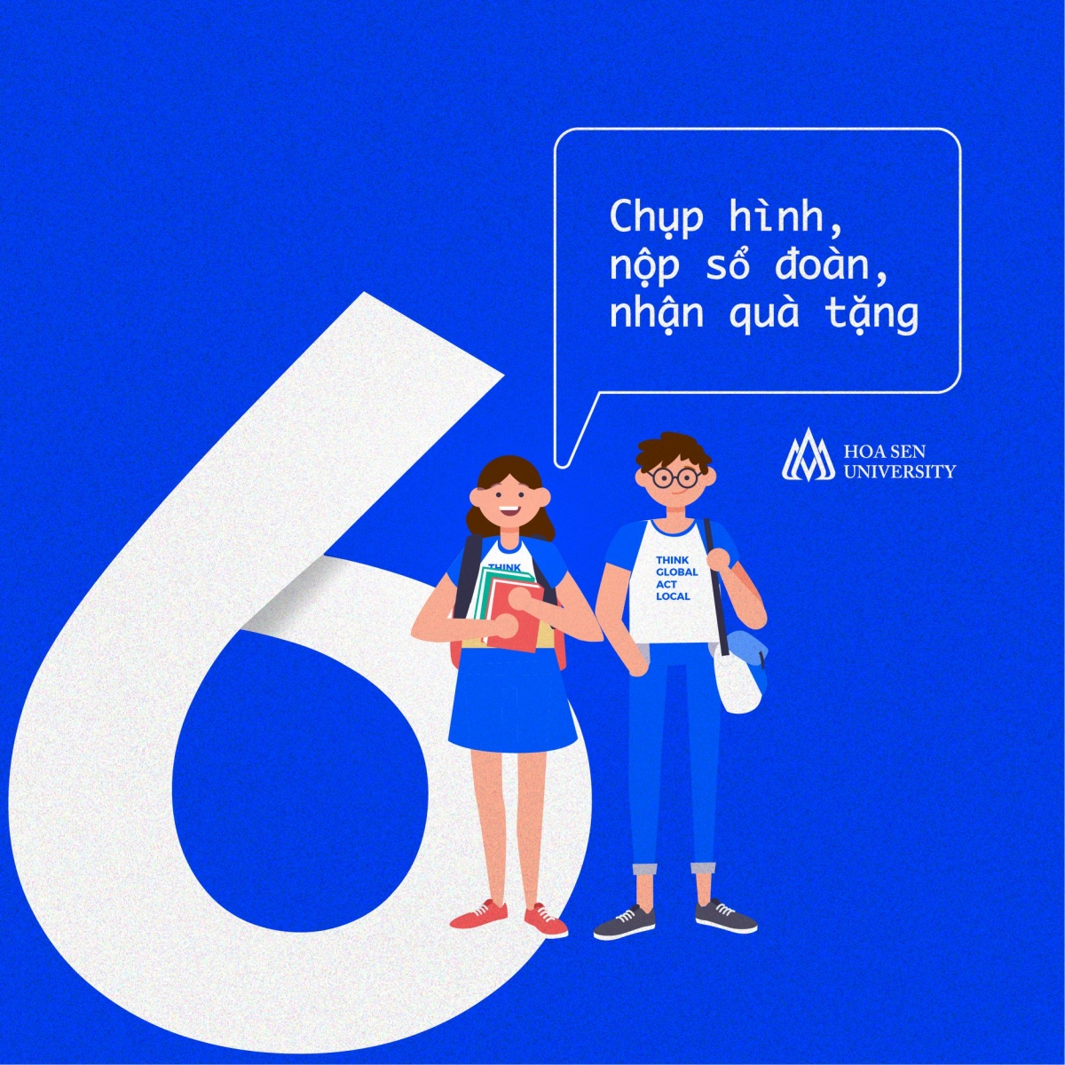 Bước 6: Sau khi hoàn tất 05 bước đăng ký nộp hồ sơ online, từ ngày 21/09 – 09/10, bạn sẽ đến trường để đăng ký và chụp hình làm thẻ sinh viên, nhận quà tặng tân sinh viên và Nộp sổ Đoàn tại P. 206 (Lầu 2), 8 Nguyễn Văn Tráng, P. Bến Thành, Q1.
