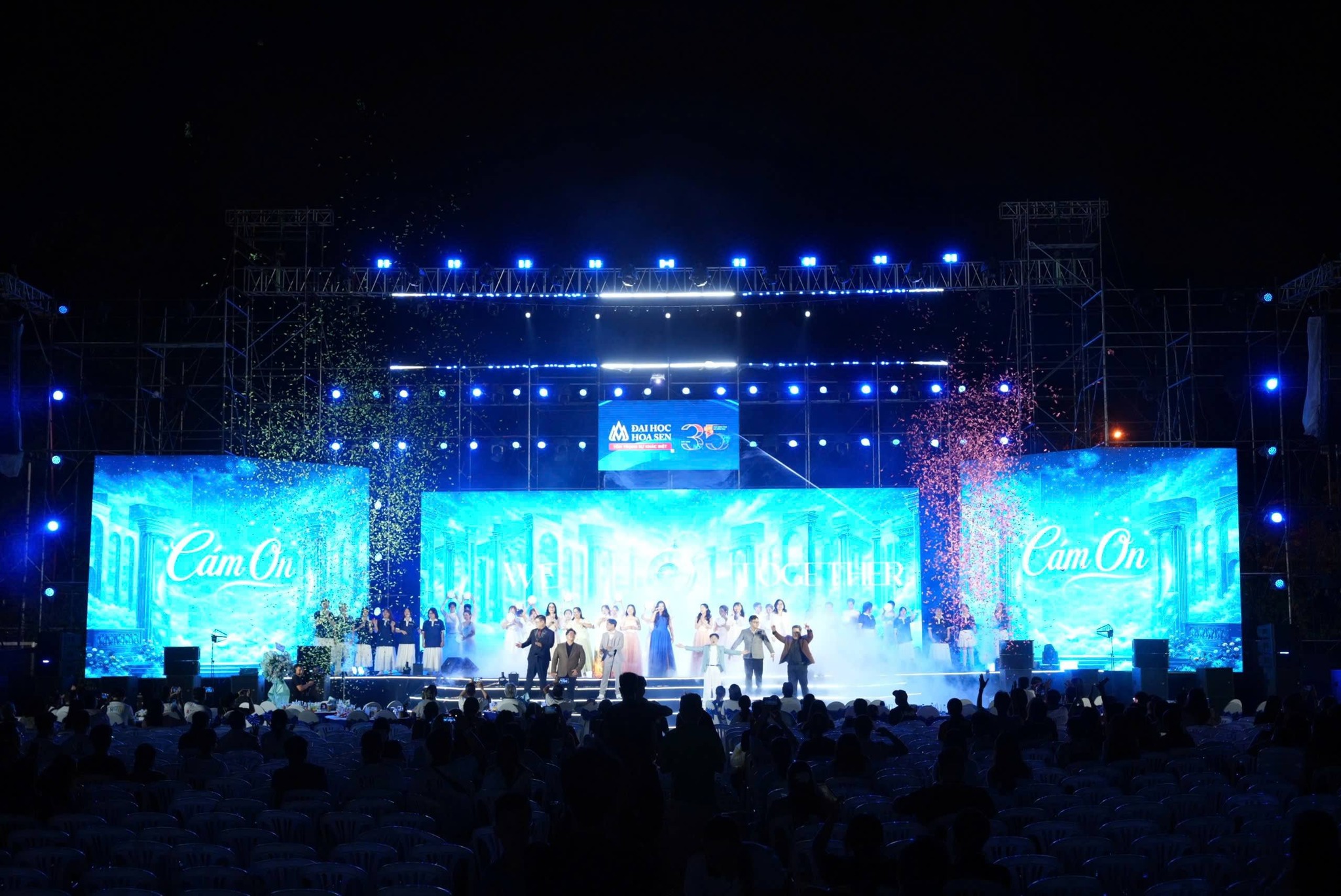 Sân khấu không còn khoảng cách giữa các thế hệ. Cựu sinh viên, sinh viên, giảng viên cùng hòa chung một nhịp, cùng hát, cùng nhớ và cùng cảm nhận sự gắn kết rất riêng của “người Hoa Sen”. Đó là khoảnh khắc mỗi cá nhân tìm lại một phần ký ức của mình, đồng thời kết nối với một cộng đồng rộng lớn hơn.