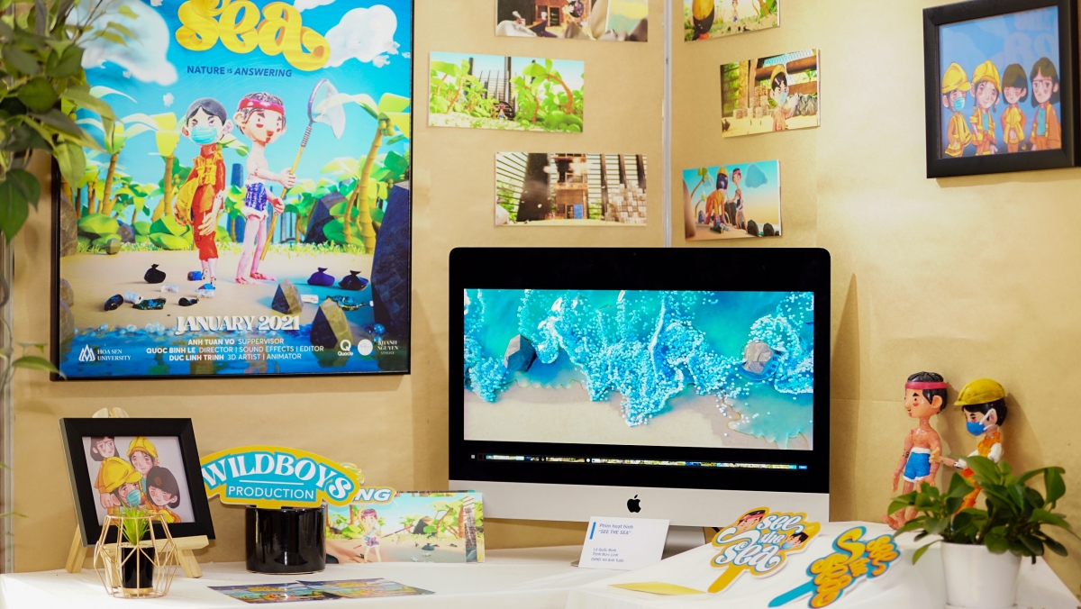 Đồ án nhóm của sinh viên Quốc Bình và Đức Linh với chủ đề “Stopmotion kết hợp 3D” dưới sự hướng dẫn của thầy Võ Anh Tuấn. Các bạn đã khéo léo kết hợp công nghệ 3D với kỹ thuật Stop Motion để hoàn thiện nhân vật hoạt hình trong bộ phim “Kêu gọi mọi người hãy bảo vệ môi trường biển”. Nhóm đã thử sức với chủ đề hoàn toàn mới mẻ và nhiều thử thách đến mức đã có lúc thật sự “đuối” vì khối lượng công việc khá nhiều. Tuy nhiên, nhóm đã nỗ lực thực hiện để hoàn thành với tất cả sự lạc quan và niềm đam mê. Đồ án được hội đồng đánh giá 8.5đ.