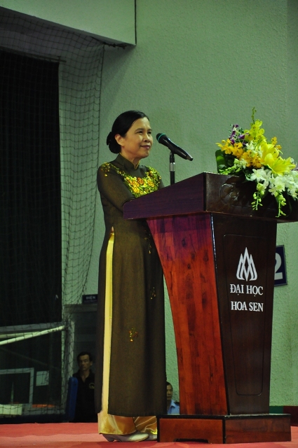 Lors de l’ouverture de la nouvelle année scolaire 2013-2014, Mme Bui Tran Phuong, présidente de l’université a, dans son discours, adressé ses félicitations aux nouveaux étudiants et remercié les chers parents d’étudiants d’avoir confié leurs enfants à l’Université Hoa Sen. La présidente a également conseillé aux étudiants de se livrer à leurs études, de faire tous les efforts possibles au cours de leurs études à l’université Hoa Sen. Mme Phuong a déclaré: “J’espère que vous allez travailler sérieusement – vous devriez être non seulement studieux, mais aussi dynamiques, créatifs et autonomes tout en vous reposant et vous amusant modérément, prudents sur la route et pratiquer souvent l’anglais pour devenir des licenciés qualifiés de l’université Hoa Sen dans un futur proche”.
