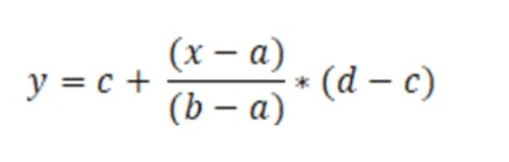 Cụ thể, mức điểm chuẩn giữa các phương thức xét tuyển khác nhau được quy đổi từ bảng phân vị tương quan với các giá trị khoảng điểm phân vị cụ thể thực hiện nội suy hàm. Theo đó, từ mức điểm chuẩn x thuộc khoảng phân vị [a,b) của phương thức tuyển sinh này sẽ được nội suy tương đương sang mức điểm chuẩn y thuộc khoảng phân vị [c,d) tương ứng với phương thức tuyển sinh khác theo công thức: