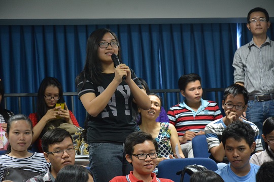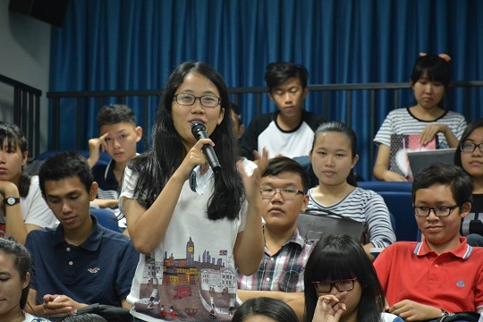 Bạn Như Quỳnh (THPT Bùi Thị Xuân) phát biểu: Nhờ tham gia chuyên đề “Giới trẻ cần làm gì để ứng phó với tác động biến đổi khí hậu, bạn mong muốn trở thành một chuyên gia chuyên ngành Biến đổi khí hậu, góp một phần tiếng nói của mình để bảo vệ môi trường.