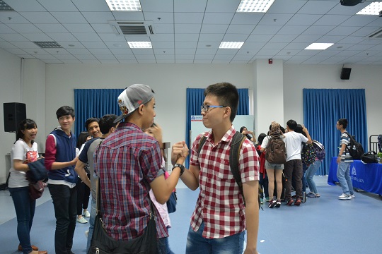 Các bạn học sinh tham gia cuộc thi ảnh “SP15 in my mind” nhận phần qua lưu niệm của chương trình