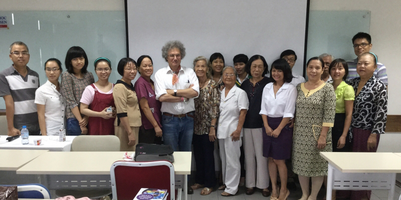 Giảng viên Hoa Sen chụp hình lưu niệm với giáo sư Daniel Raichvarg.