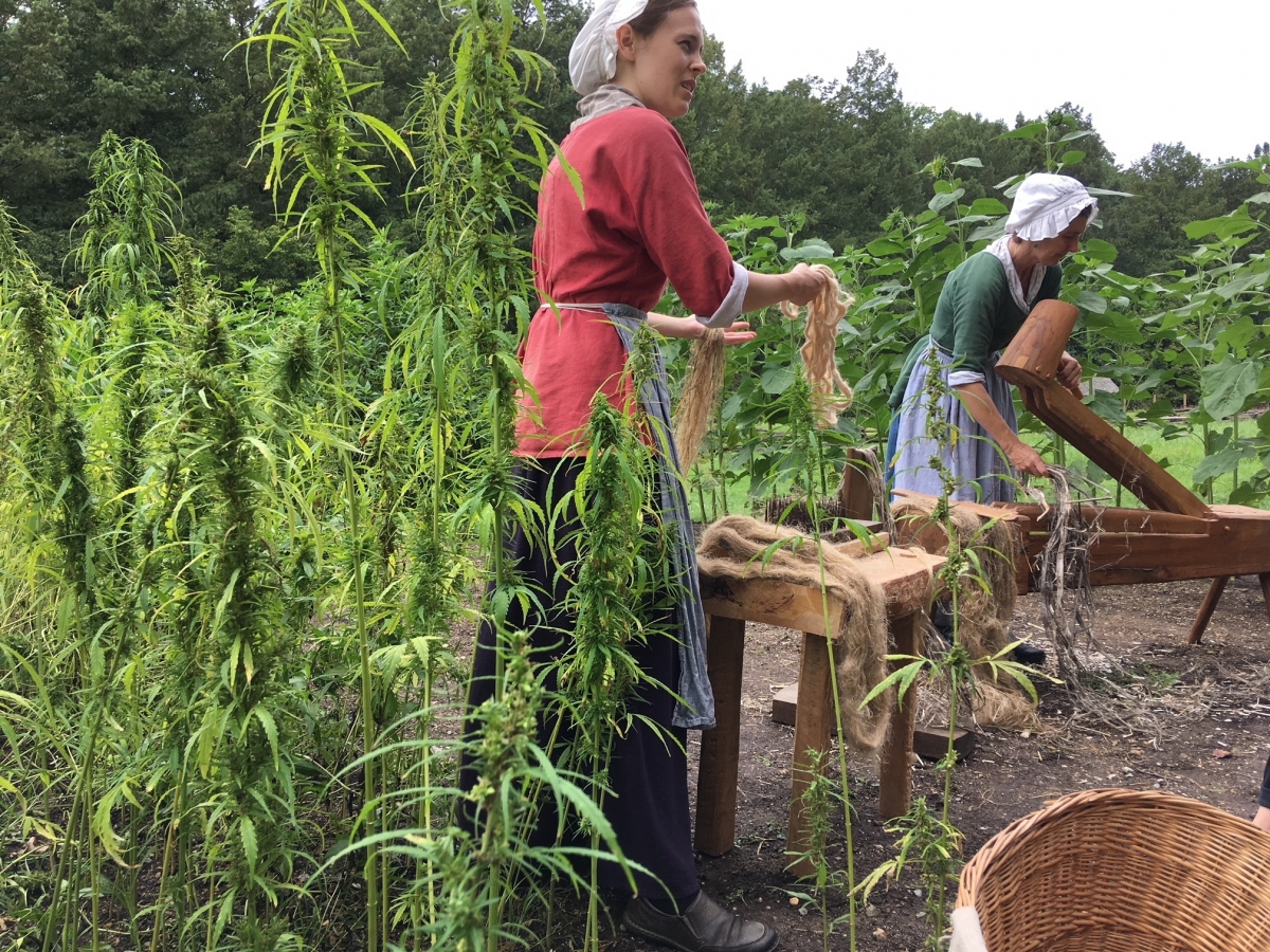 Làm sợi gai dầu thủ công trên nông trường Mount Vernon năm 2018 (Ảnh: Internet)