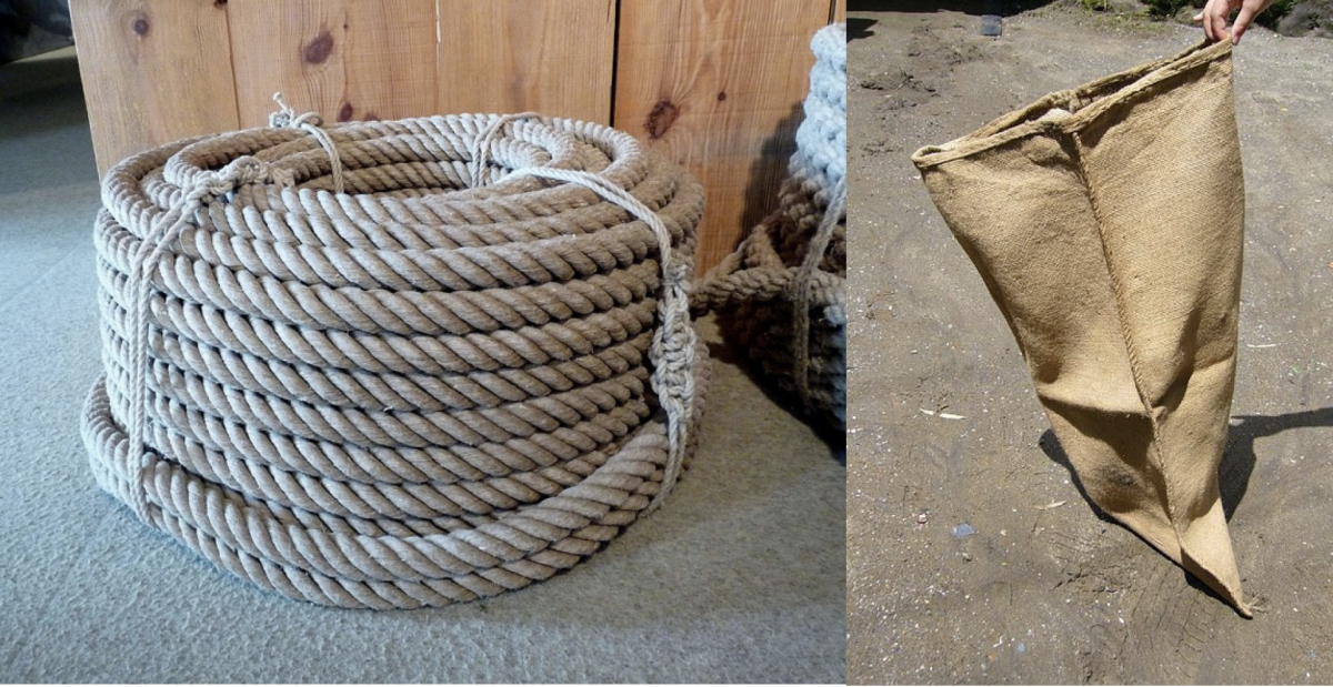 Dây thừng và bvao tải làm từ gai dầu. (Ảnh: Internet)