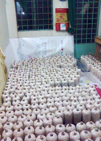 | Những mẻ nấm từ vụ mua bán được Lâm Vạn Lập mang về trồng và nghiên cứu trong nhà. Ảnh: Hà Thanh. |