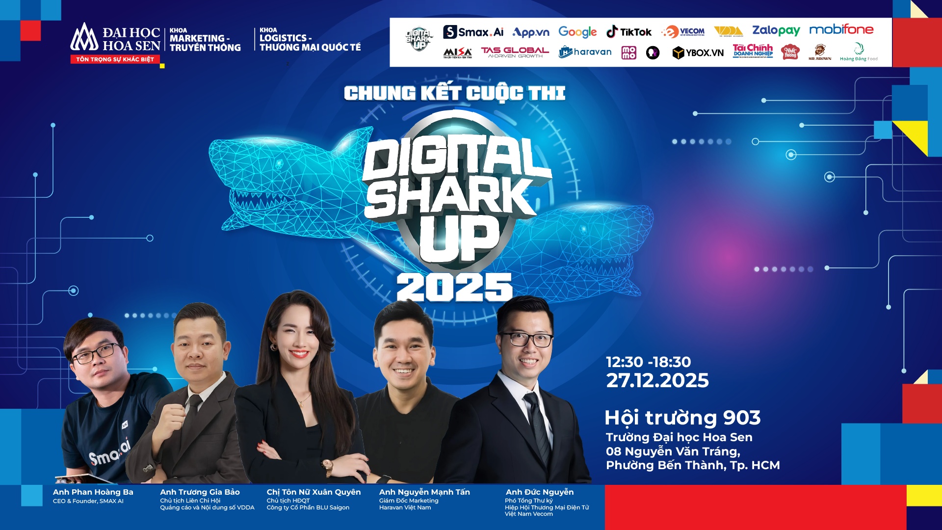 - Địa điểm: Hội trường 903, Trụ sở Nguyễn Văn Tráng – Trường Đại học Hoa Sen