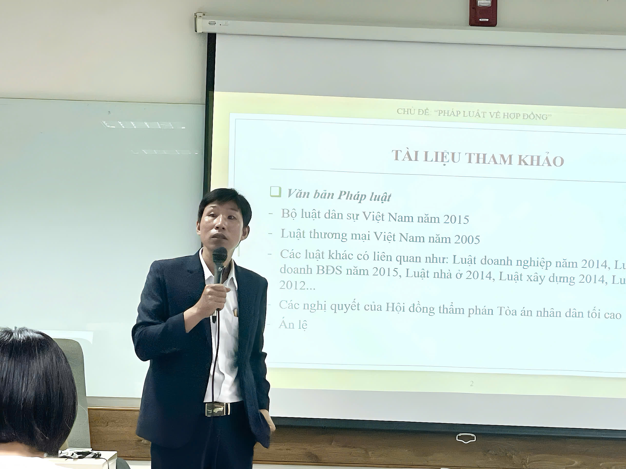 ThS. Đoàn Trọng Đàn – Trưởng phòng Đào tạo, Viện Nghiên cứu & Phát triển Doanh nghiệp vừa và nhỏ giúp sinh viên hệ thống: điều kiện để hợp đồng có hiệu lực; các trường hợp vô hiệu và hậu quả pháp lý; cấu trúc và nội dung chuẩn của hợp đồng; những lỗi thường gặp và cách hạn chế rủi ro.
