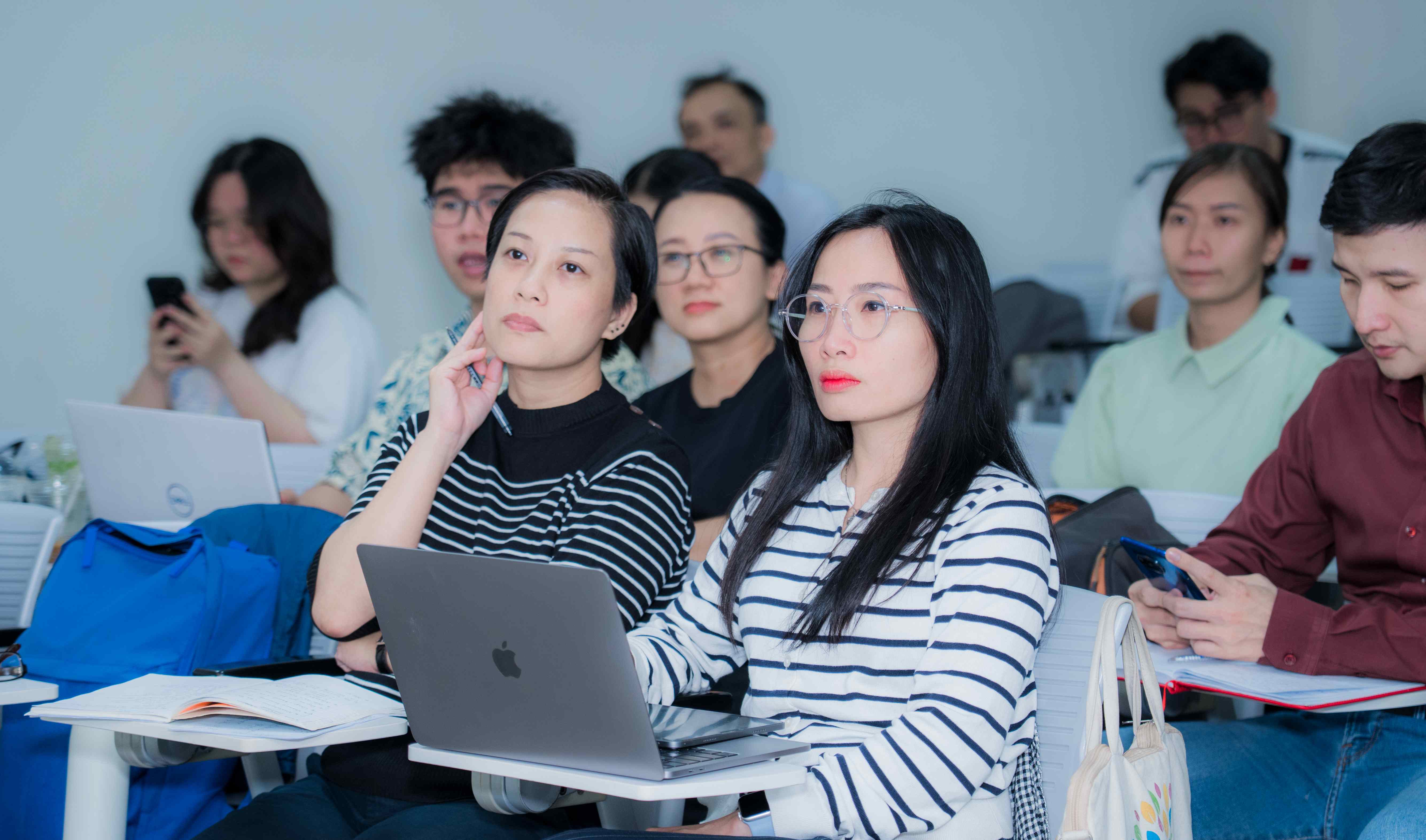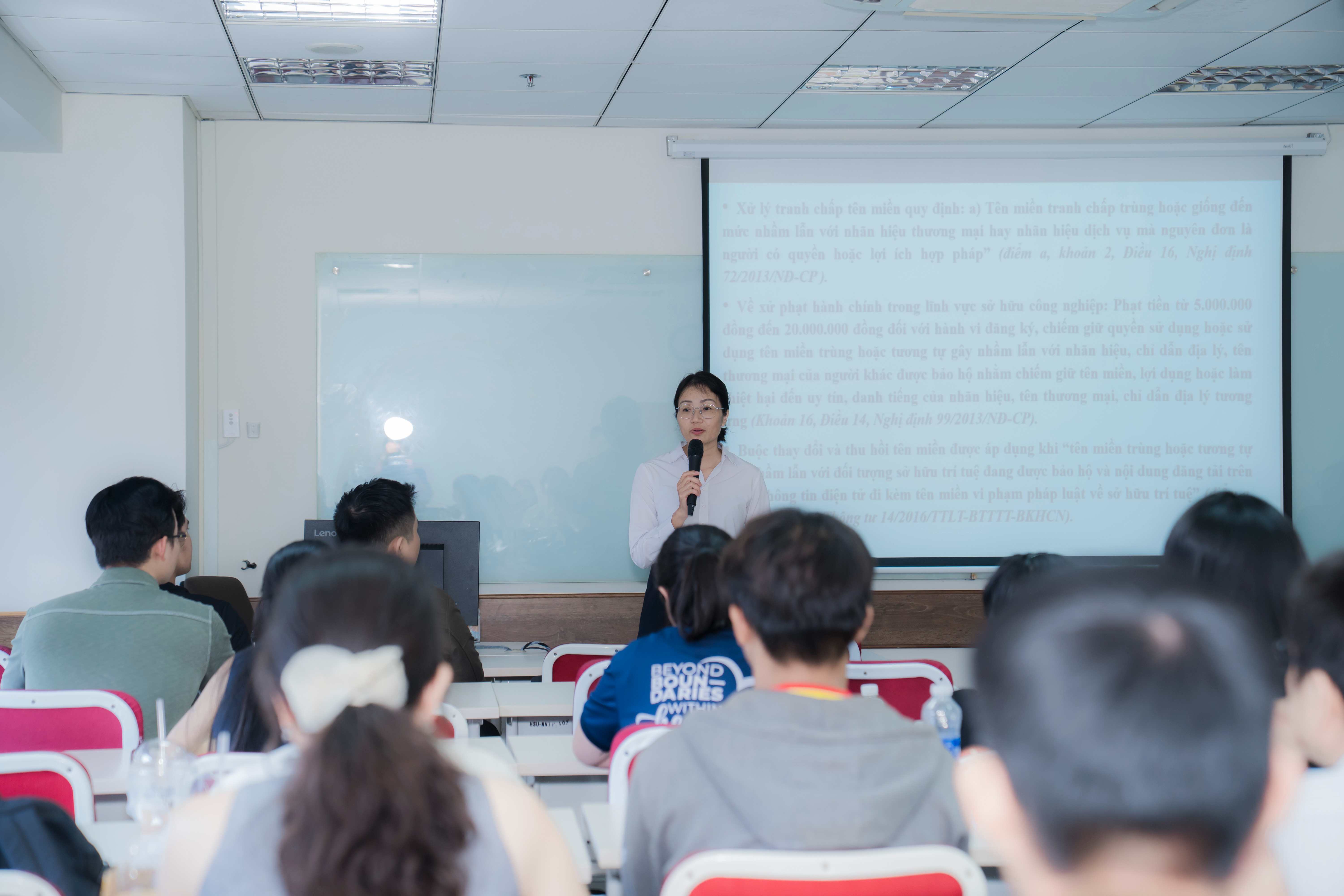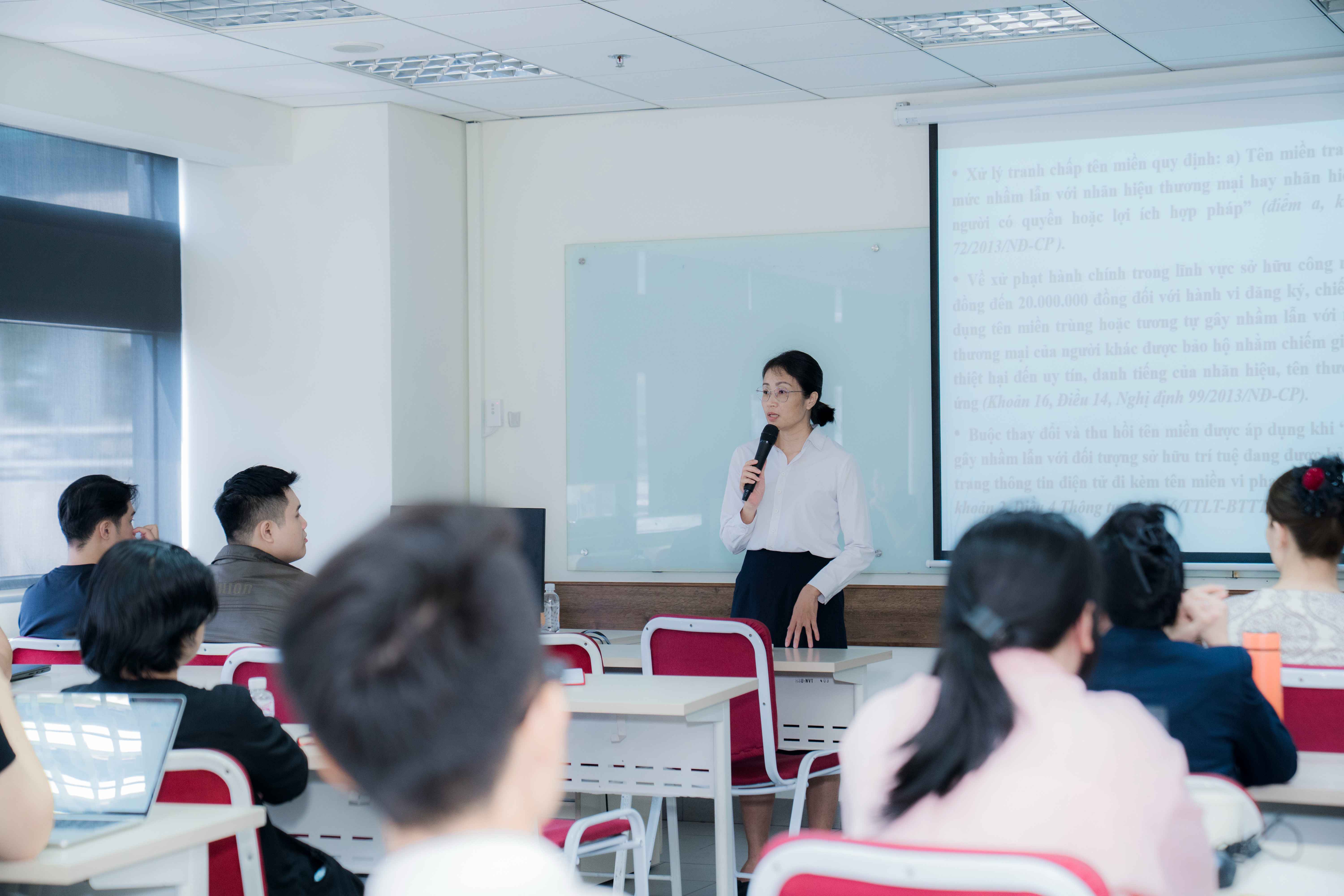 Trong phần chia sẻ của Bà Hà Thị Vân Anh – Trưởng văn phòng Công ty Luật TNHH THB LAW (Chi nhánh TP.HCM), người học được tiếp cận bức tranh pháp lý tổng thể gồm: nhận diện và phòng ngừa rủi ro; áp dụng luật về sở hữu trí tuệ, đầu tư, doanh nghiệp, lao động, thuế, thương mại; yêu cầu pháp lý của từng loại hình kinh doanh và thủ tục đầu tư.