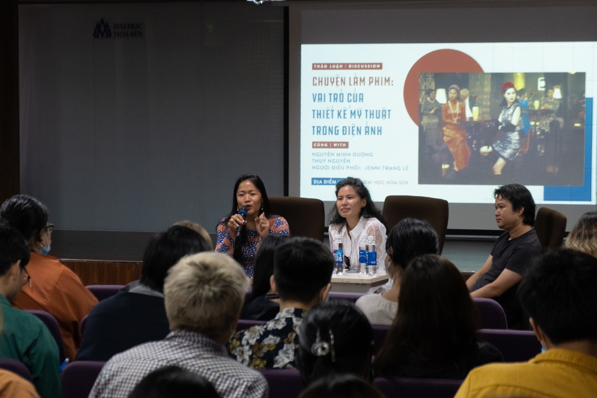 Với các diễn giả giàu kinh nghiệm như Nguyễn Minh Đương (Thiết kế mỹ thuật), Thuỷ Nguyễn (Thiết kế phục trang) và người điều phối Jenni Trang Lê (nhà sản xuất), cuộc thảo luận này mở ra hành trình thực tế của những người đảm đương vai trò kiến tạo câu chuyện thị giác của một bộ phim thông qua việc thiết kế không gian, bối cảnh cũng như phục trang.