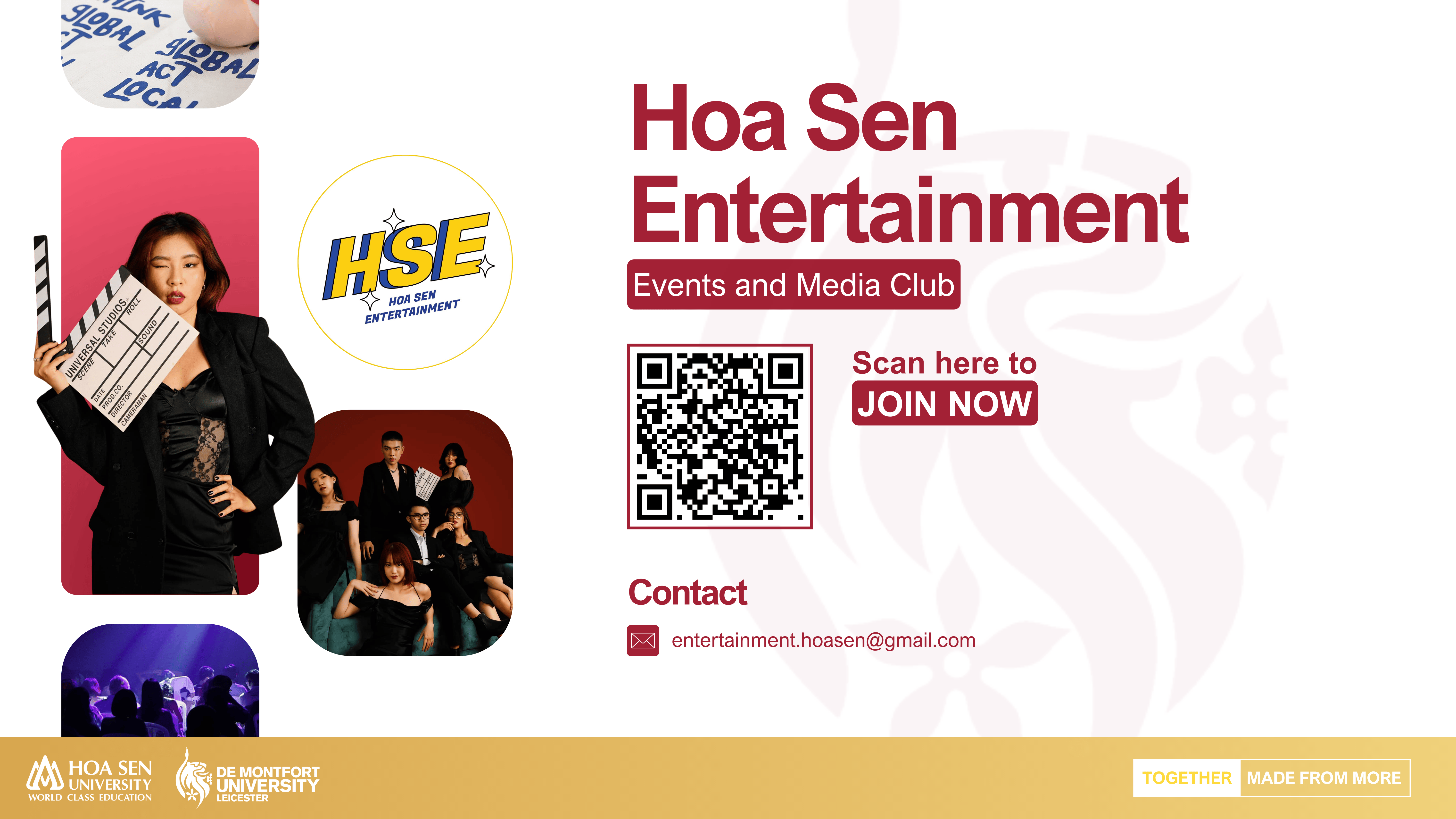 Hoa Sen Entertainment is the Event and Media Club, gathering students from Hoa Sen University to organize and support events as well as media activities for the university