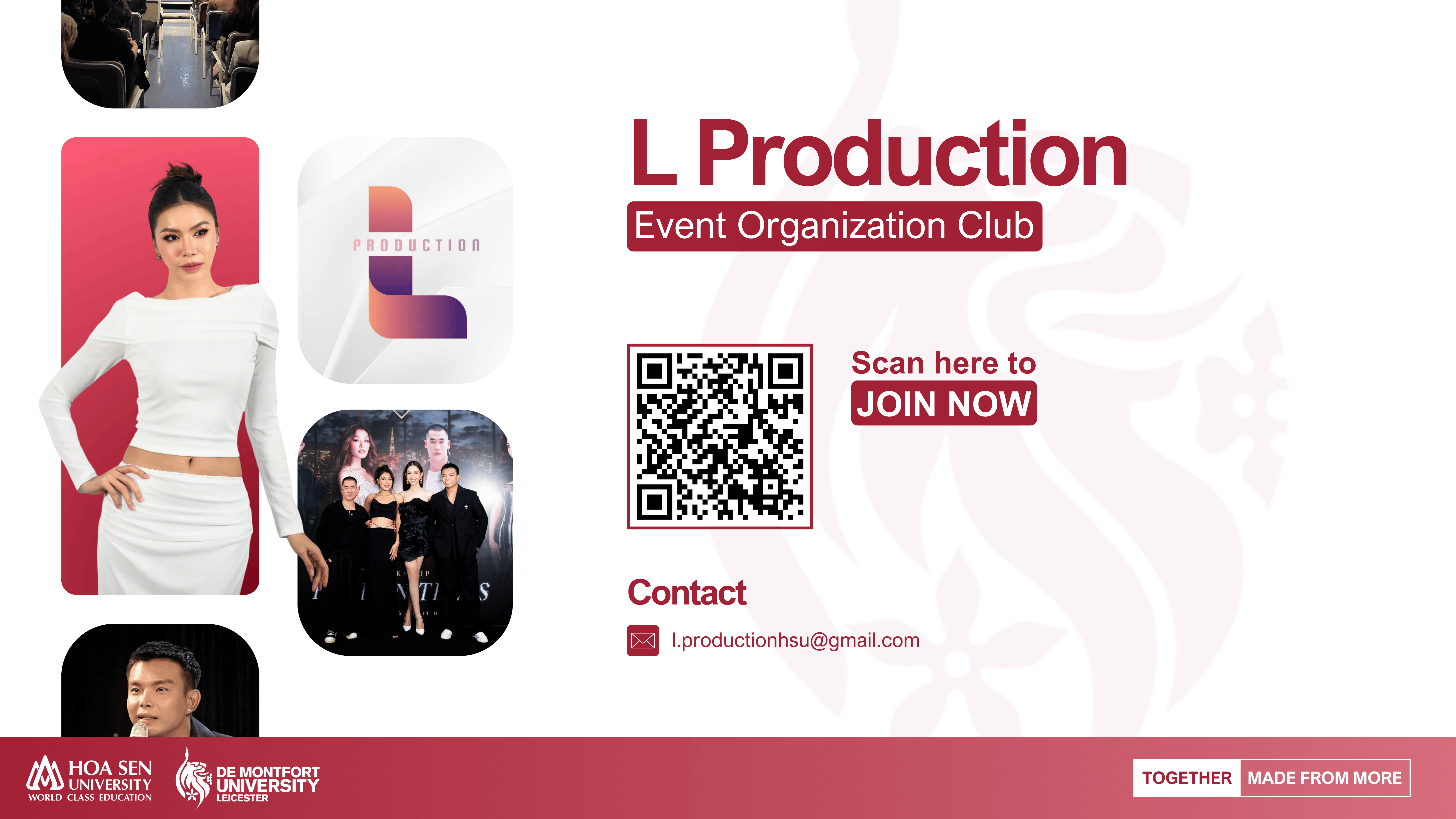 L Production is a club focused on organizing talk shows, established with the goal of providing fresh perspectives and insights on topics that are of interest to students.