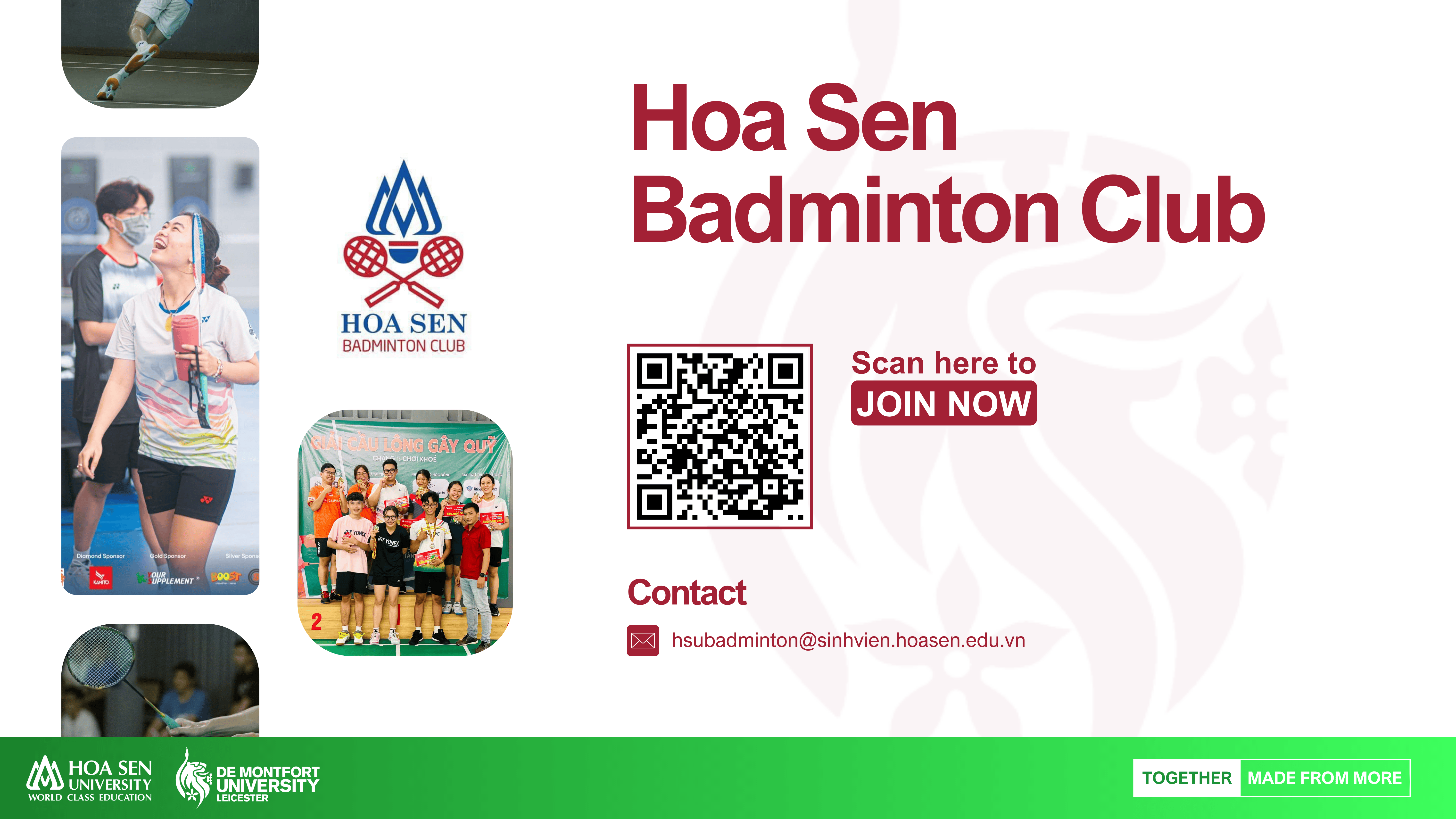 A gathering place for members passionate about badminton. Established in 2012, the club has become a healthy playground for many generations of students.