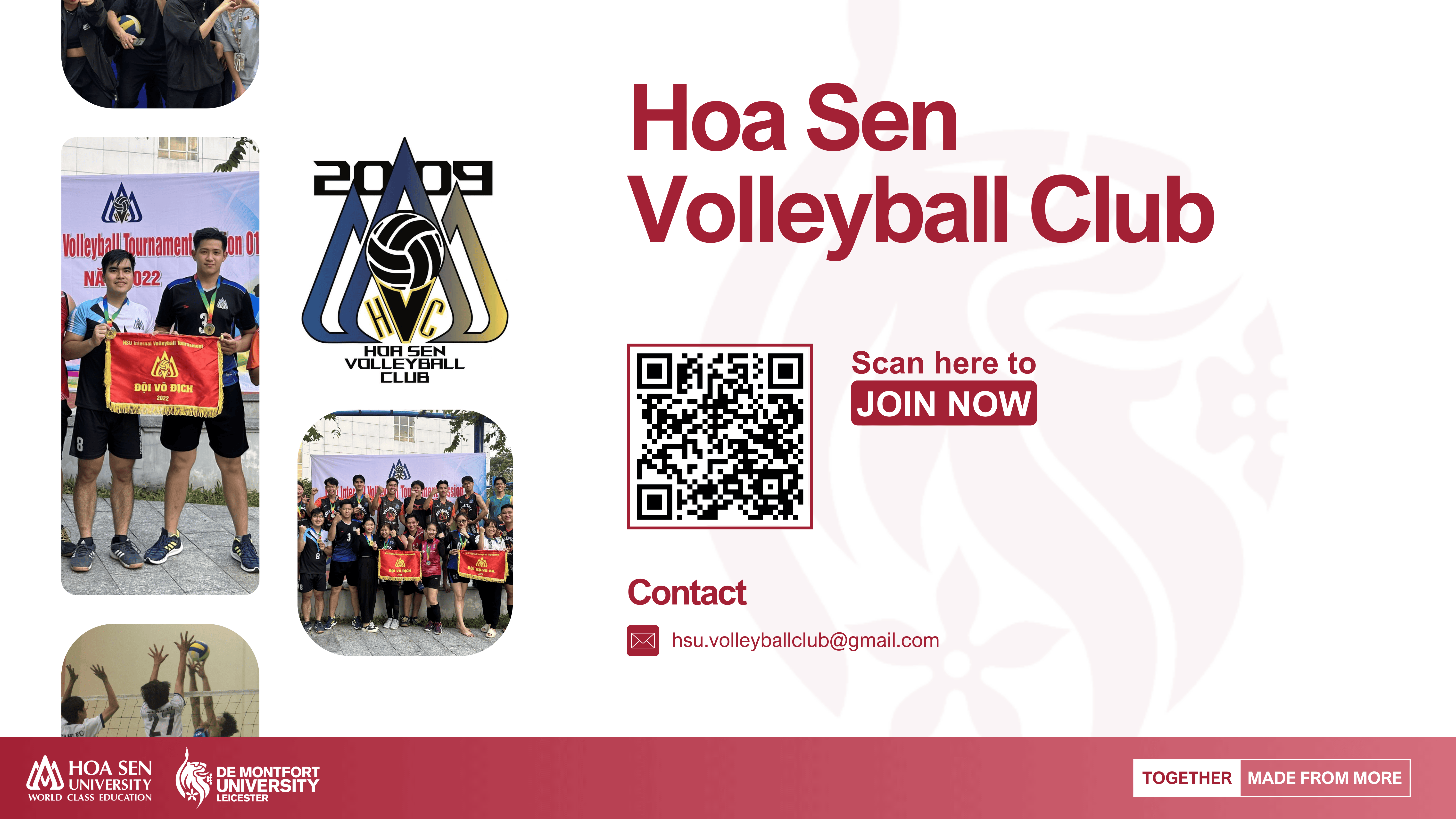 The HSU Volleyball Club was established in 2009 and has been maintaining regular training activities for students ever since. The club also frequently organizes friendly matches with students from other universities to motivate members to improve their skills and connect with new friends.