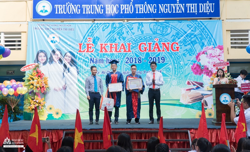 Tại trường THPT Nguyễn Thị Diệu, đại diện trường Đại học Hoa Sen đã trao thưởng cho 7 học sinh ( gồm 4 học sinh lớp 10 tuyển sinh đầu vào có điểm cao nhất trường và 3 học sinh lớp 12 có điểm thi THPT 2018 đạt kết quả cao nhất trường) mỗi suất khen thưởng trị giá 500.000 VNĐ và tặng 4 balo dành cho 4 học sinh khối lớp 10. Trước đó, trường Đại học Hoa Sen và THPT Nguyễn Thị Diệu đã cùng nhau ký kết hợp tác giáo dục giữa 2 trường vào ngày 18/11/2017.