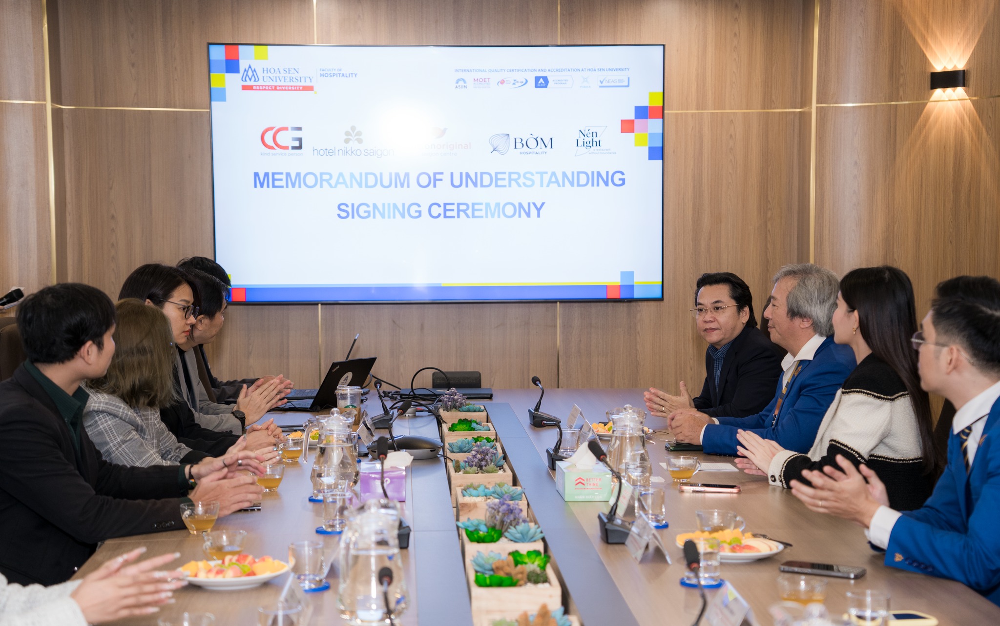 Sáng ngày 19/12/2025, Khoa Du lịch – Nhà hàng – Khách sạn, Trường Đại học Hoa Sen (HSU) đã tổ chức Lễ ký kết Biên bản ghi nhớ hợp tác (MOU) với 5 doanh nghiệp uy tín hoạt động trong các lĩnh vực Du lịch – Nhà hàng – Khách sạn – Sự kiện.