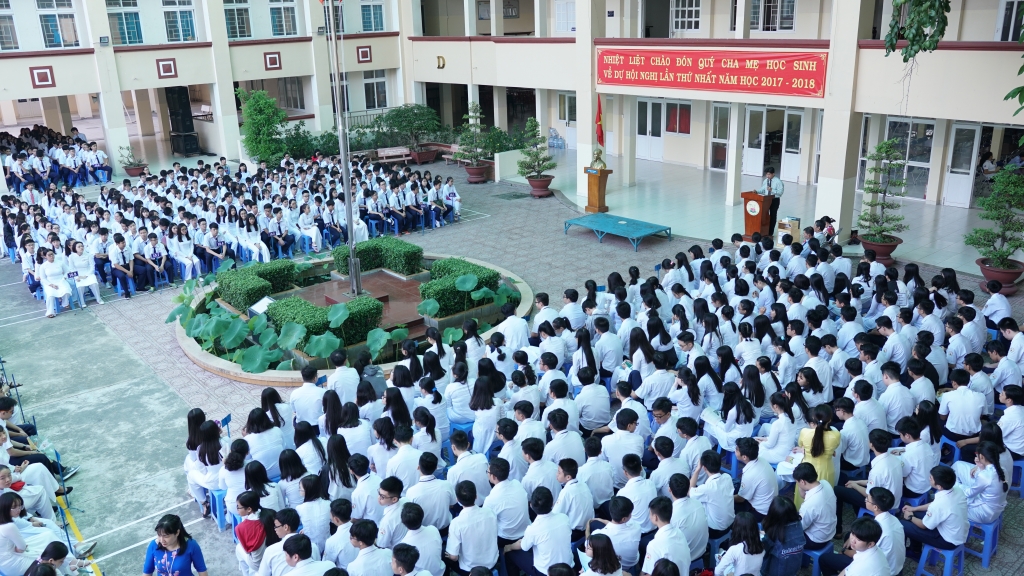 Học sinh khối 12 trường THPT Nguyễn Hiền tham dự buổi phát động nghiên cứu khoa học.