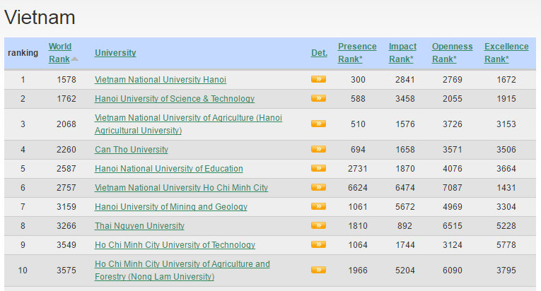 >> Xem thêm kết quả xếp hạng 100 trường đại học tại Việt Nam