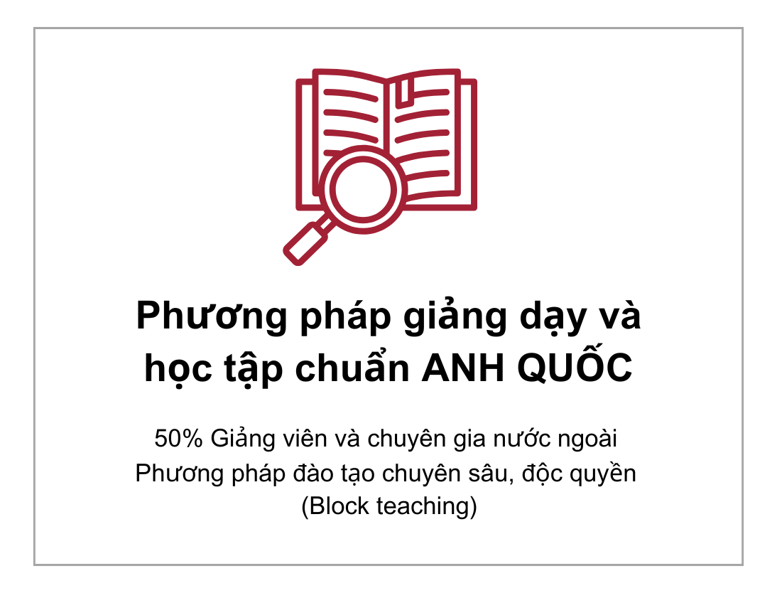 • 50% giảng viên quốc tế, áp dụng Block Teaching từ Vương Quốc Anh.