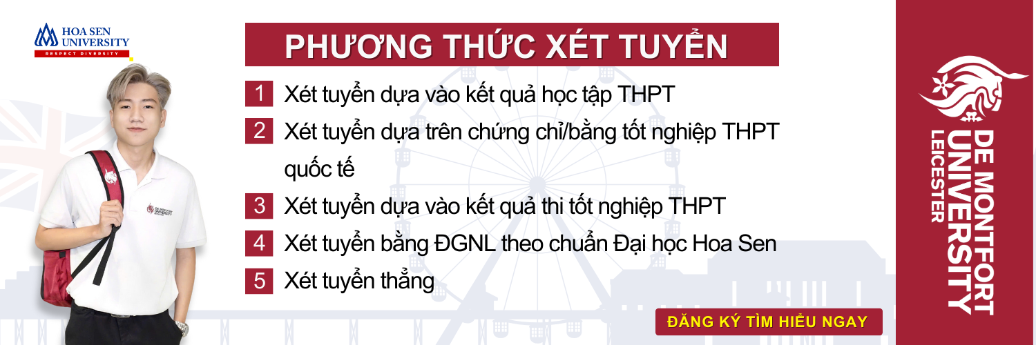 5 Phương Thức Tuyển Sinh Chương Trình DMU-HSU là những lựa chọn linh hoạt giúp thí sinh dễ dàng tiếp cận chương trình liên kết quốc tế chuẩn Vương Quốc Anh ngay tại Việt Nam. Mỗi phương thức được thiết kế để phù hợp với năng lực, điều kiện học tập và thế mạnh riêng của từng thí sinh, đảm bảo tối đa cơ hội trúng tuyển của các bạn thí sinh. Đồng thời, các phương thức này giúp các bạn thí sinh chủ động hơn trong việc lựa chọn hình thức xét tuyển phù hợp nhất với năng lực và mục tiêu học tập của mình.
