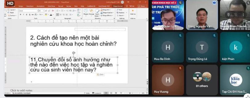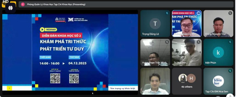 Chiều ngày 04/12/2025, Diễn đàn Khoa học số 2 được tổ chức dưới hình thức webinar đã thu hút gần 100 giảng viên, sinh viên đến từ Trường Đại học Hoa Sen (HSU) và Trường Đại học Công nghệ Miền Đông. Sự kiện mang đến góc nhìn thực tiễn về nghiên cứu khoa học (NCKH) và khởi nghiệp đổi mới sáng tạo (ĐMST) – hai năng lực quan trọng giúp sinh viên tự tin hội nhập trong kỷ nguyên AI.