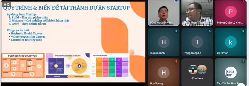 Khi kết quả nghiên cứu đã rõ ràng, sinh viên áp dụng tư duy Lean Startup để xây dựng sản phẩm mẫu, tiến hành thử nghiệm, đo lường phản hồi và tối ưu. Quy trình này giúp biến kết quả nghiên cứu thành giải pháp có khả năng ứng dụng trong thực tế và phát triển thành dự án hoàn chỉnh.