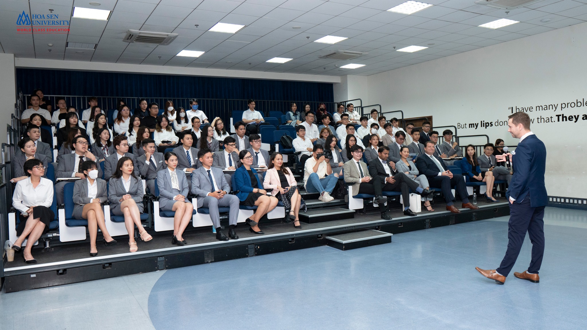 The Hoa Sen Elite program students who participated in the meeting, including Quach Thanh Đat, Luu Le Minh Man, Ha Hoang Phi, Nguyen Thanh Truc, and Nguyen Thi Thao Van, had the opportunity to be interviewed directly by the General Manager and the HR Director for internship positions at the hotel in the United States.