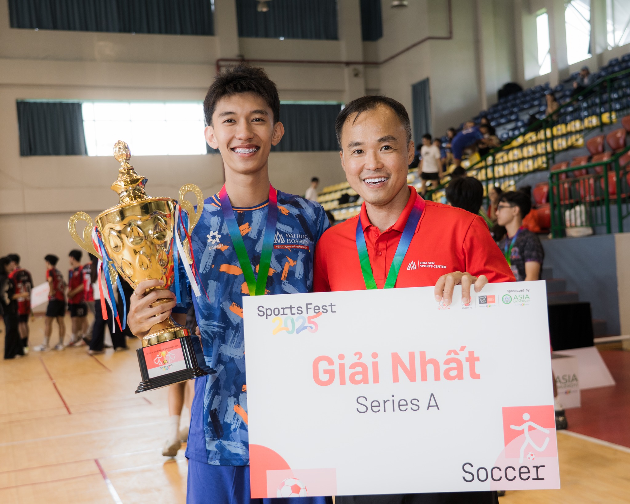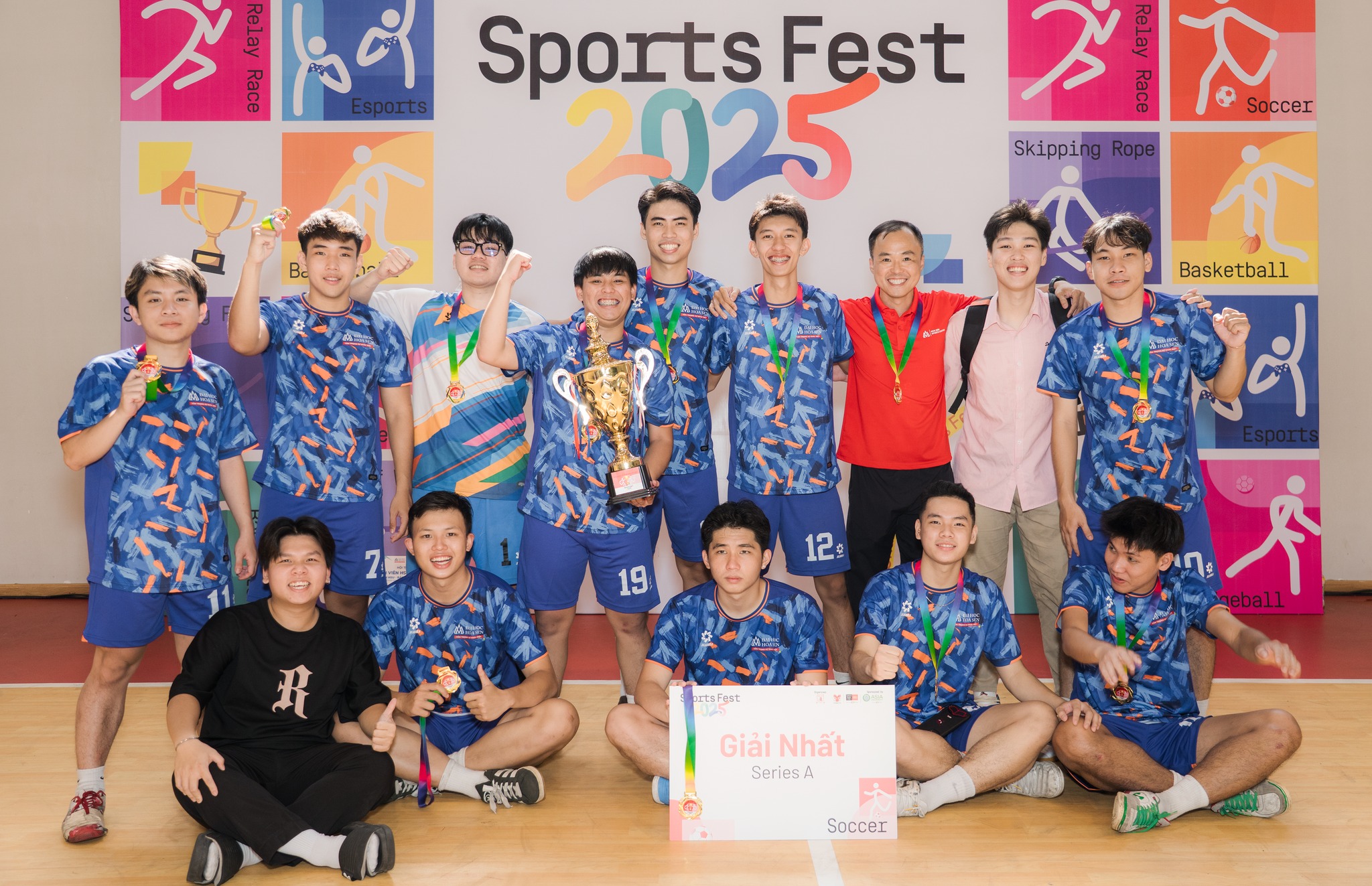 Thi đấu với tinh thần kỷ luật, lối chơi gắn kết và bản lĩnh ổn định, Đội tuyển – CLB Bóng đá Trường Đại học Hoa Sen (HSU FC) đã xuất sắc giành ngôi vô địch futsal nam tại Sports Fest 2025 TP.HCM, đồng thời đạt thành tích nổi bật ở các giải thưởng cá nhân, khẳng định hình ảnh sinh viên HSU năng động và toàn diện.