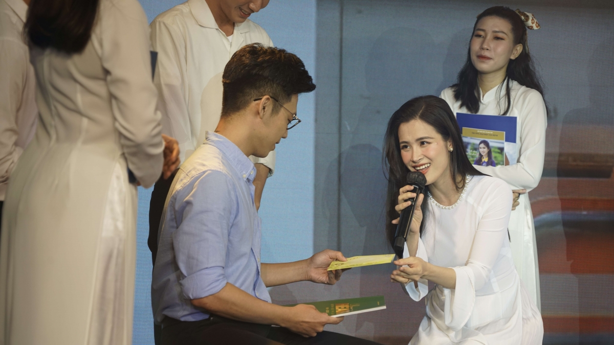 Đông Nhi cùng với sinh viên HSU phủ một sắc trắng tinh khôi trong chương trình tri ân Nhà giáo tại You Rock Studio