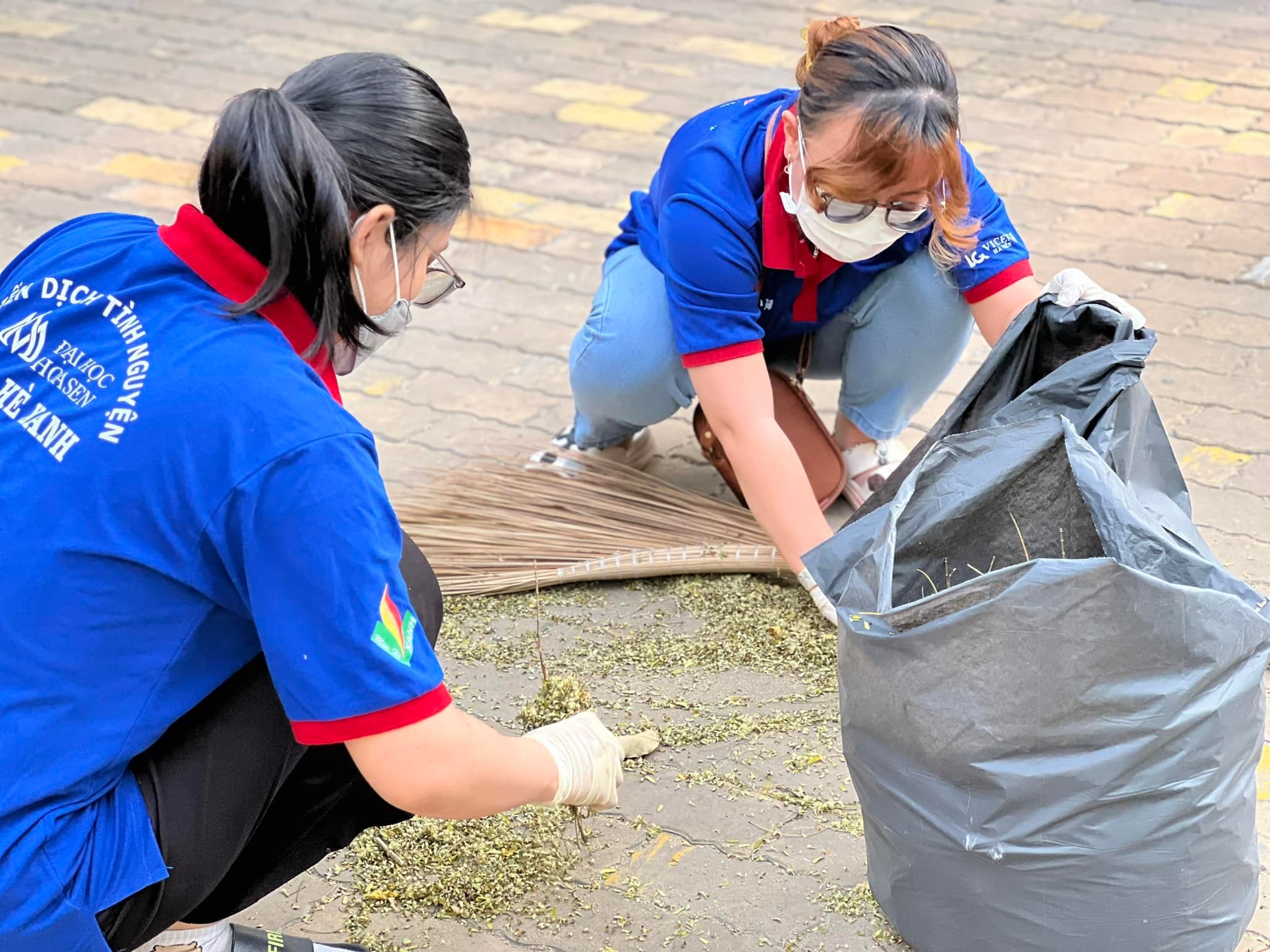Gần đây nhất, vào ngày 25 tháng 5 năm 2025, một hoạt động “Ngày Chủ nhật Xanh” đầy cảm xúc lại được khởi động ngay tại khuôn viên trường tại cơ sở Quang Trung 2, với sự tham gia đông đảo của các bạn sinh viên HSU. Đặc biệt hơn cả, đây là hoạt động mang ý nghĩa “nội sinh”, đánh thức ý thức giữ gìn môi trường học tập của chính các bạn trẻ trong không gian gần gũi nhất – ngôi trường thân yêu của mình. Vào sáng Chủ nhật là khoảng thời gian thường dành cho nghỉ ngơi nhưng các bạn sinh viên đã lựa chọn đứng dậy, khoác lên mình màu áo xanh, cầm theo chổi, bao rác, dụng cụ vệ sinh để cùng nhau làm sạch sân trường, các bồn hoa, hành lang lớp học. Công việc tuy đơn giản nhưng lại chứa đựng thông điệp mạnh mẽ: sống xanh bắt đầu từ những hành động nhỏ nhất và từ những nơi thân thuộc nhất. Thông qua hoạt động này, các bạn không chỉ tạo nên một không gian học tập sạch sẽ, tươi mới, mà còn tiếp thêm động lực và niềm tin cho đội ngũ lao công của nhà trường, những người luôn âm thầm chăm sóc cơ sở vật chất từng ngày. Đó là biểu hiện đẹp đẽ của sự sẻ chia và ý thức cộng đồng.