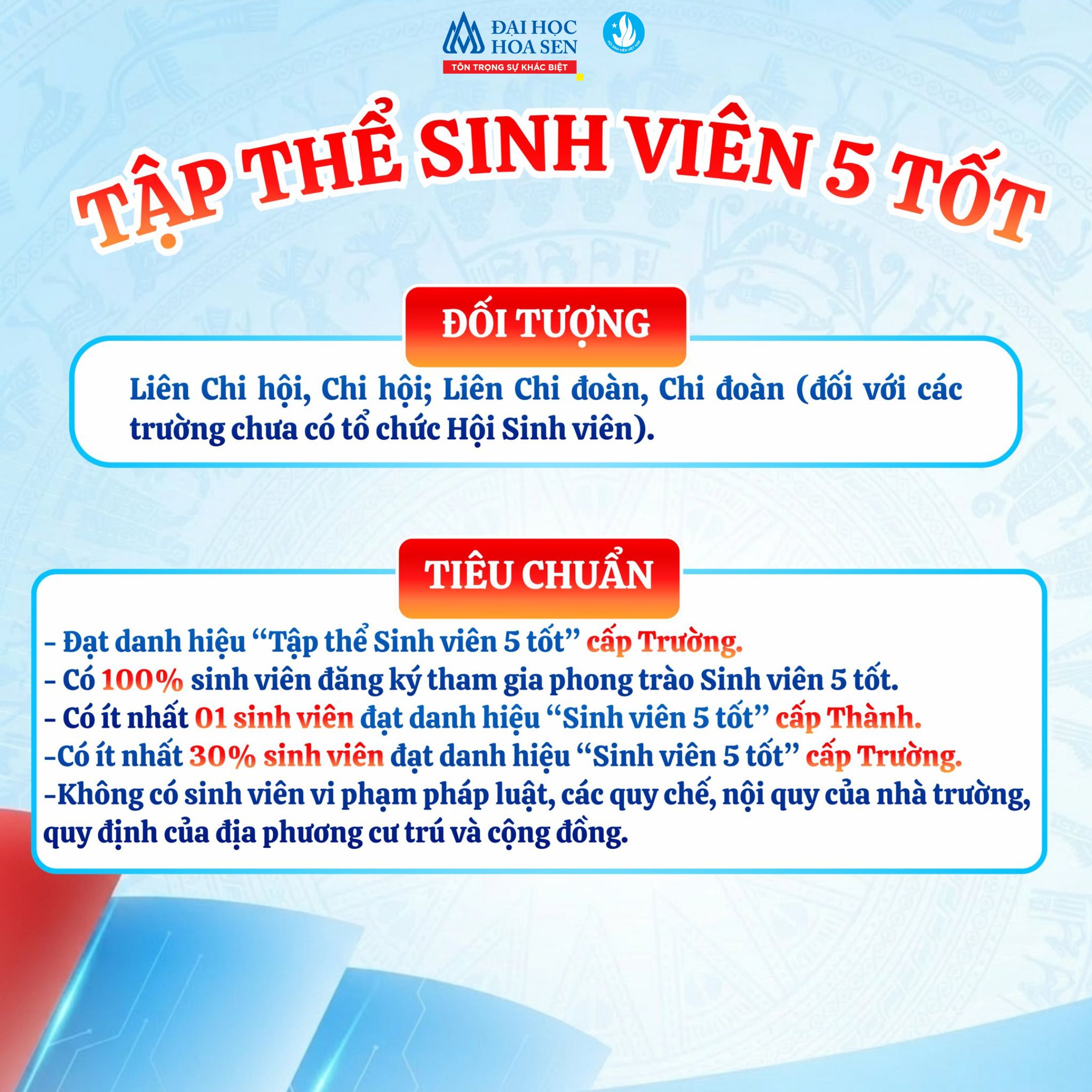 Danh hiệu “Sinh viên 5 tốt” và “Tập thể sinh viên 5 tốt” cấp Thành phố Hồ Chí Minh là sự ghi nhận dành cho những cá nhân, tập thể sinh viên tiêu biểu với quá trình rèn luyện toàn diện và đóng góp tích cực cho cộng đồng.