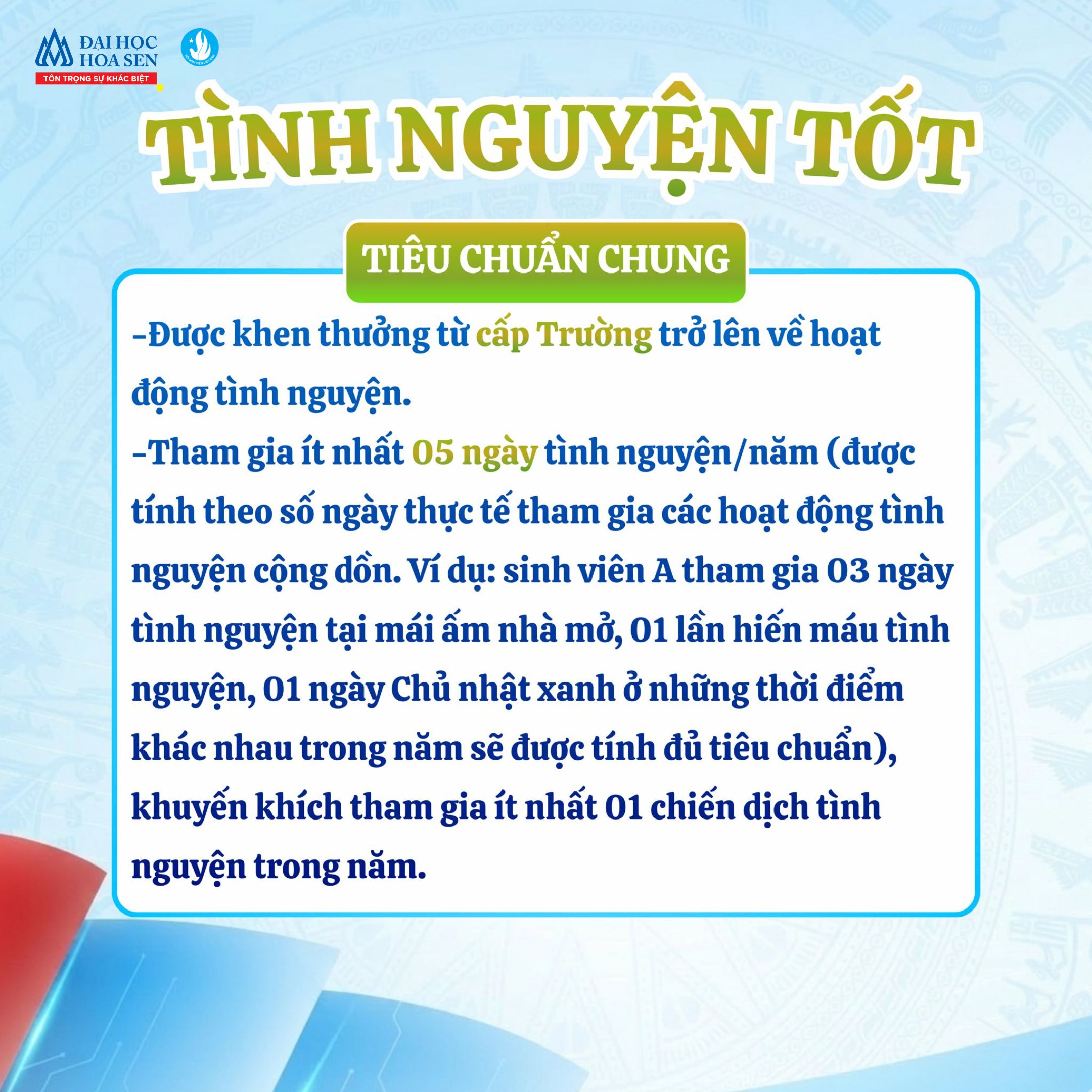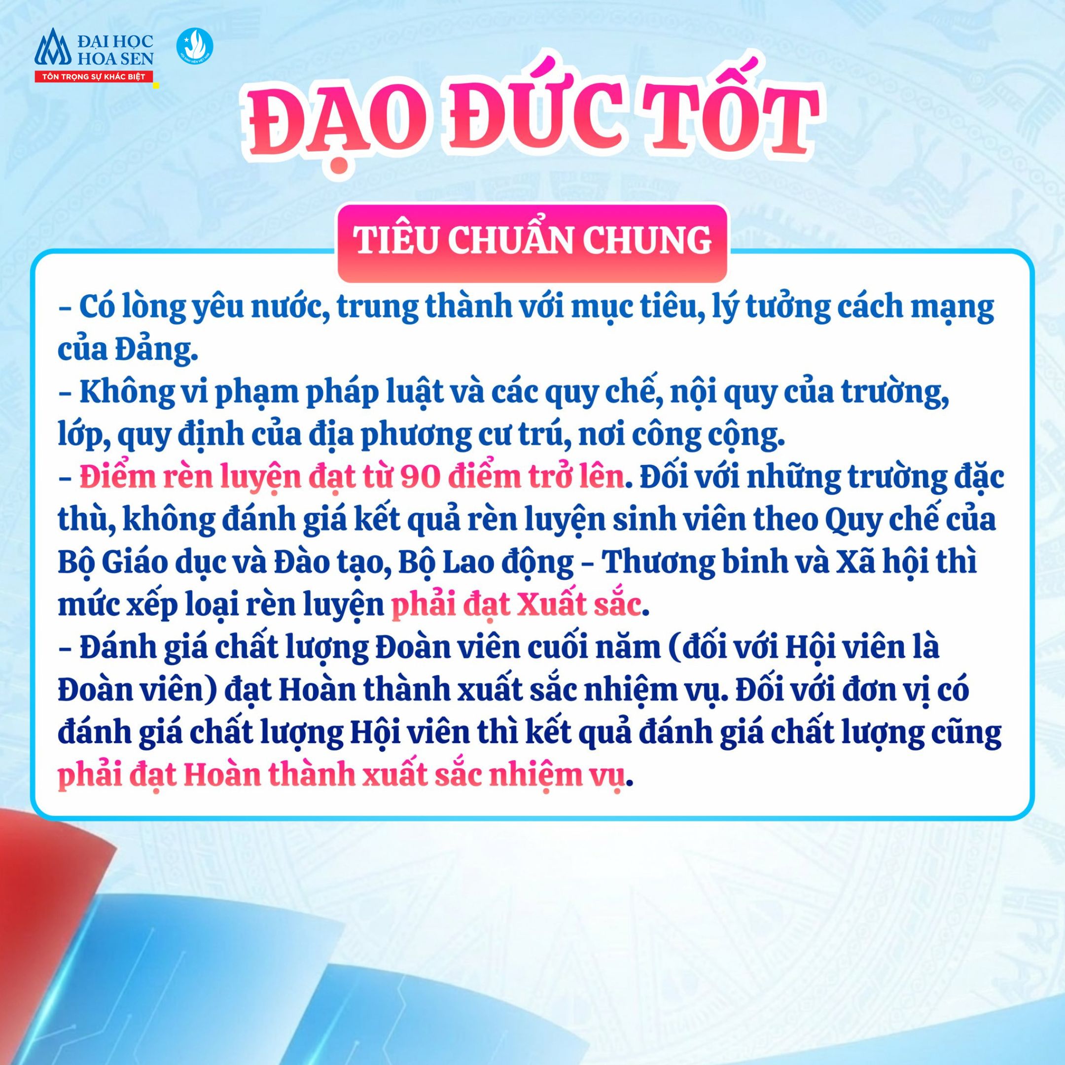 Thông qua infographic, các tiêu chuẩn được trình bày trực quan – dễ hiểu – dễ theo dõi, giúp sinh viên chủ động xây dựng kế hoạch rèn luyện và phấn đấu phù hợp.
