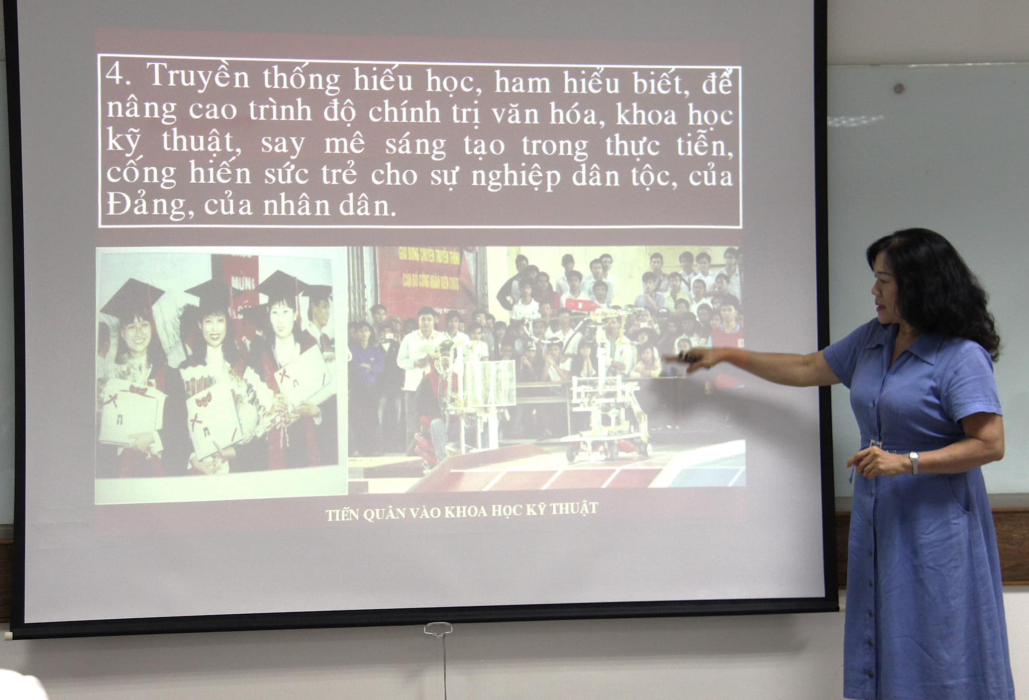 Tại buổi học các bạn sinh viên đã được cô Nguyễn Thị Hiền – Nguyên giảng viên Trường Đoàn Lý Tự Trọng và anh Trương Minh Trung – UV. Ban Thường vụ Đoàn Trường chia sẻ các kiến thức về tổ chức Đoàn TNCS Hồ Chí Minh.