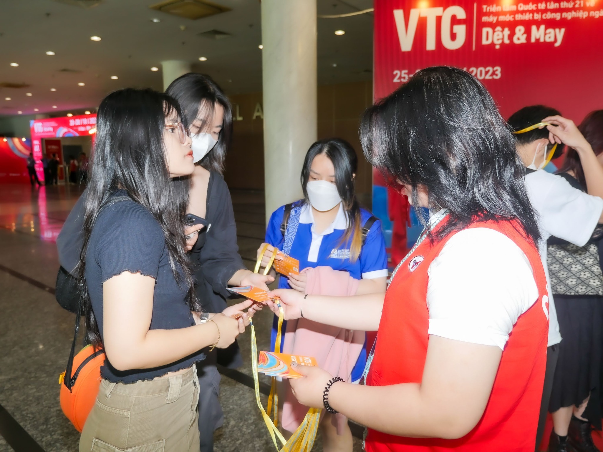 The exhibition has a scale of 830 booths of more than 500 exhibitors from 12 countries and territories, focusing on the topic of factory digitalization, with the goal of promoting the modernization of Vietnam’s textile and garment industry. At the exhibition, students learned about machinery and equipment for the textile industry, raw materials for the textile and garment industry, dyeing and chemical industry, leather and footwear industry and raw materials.
