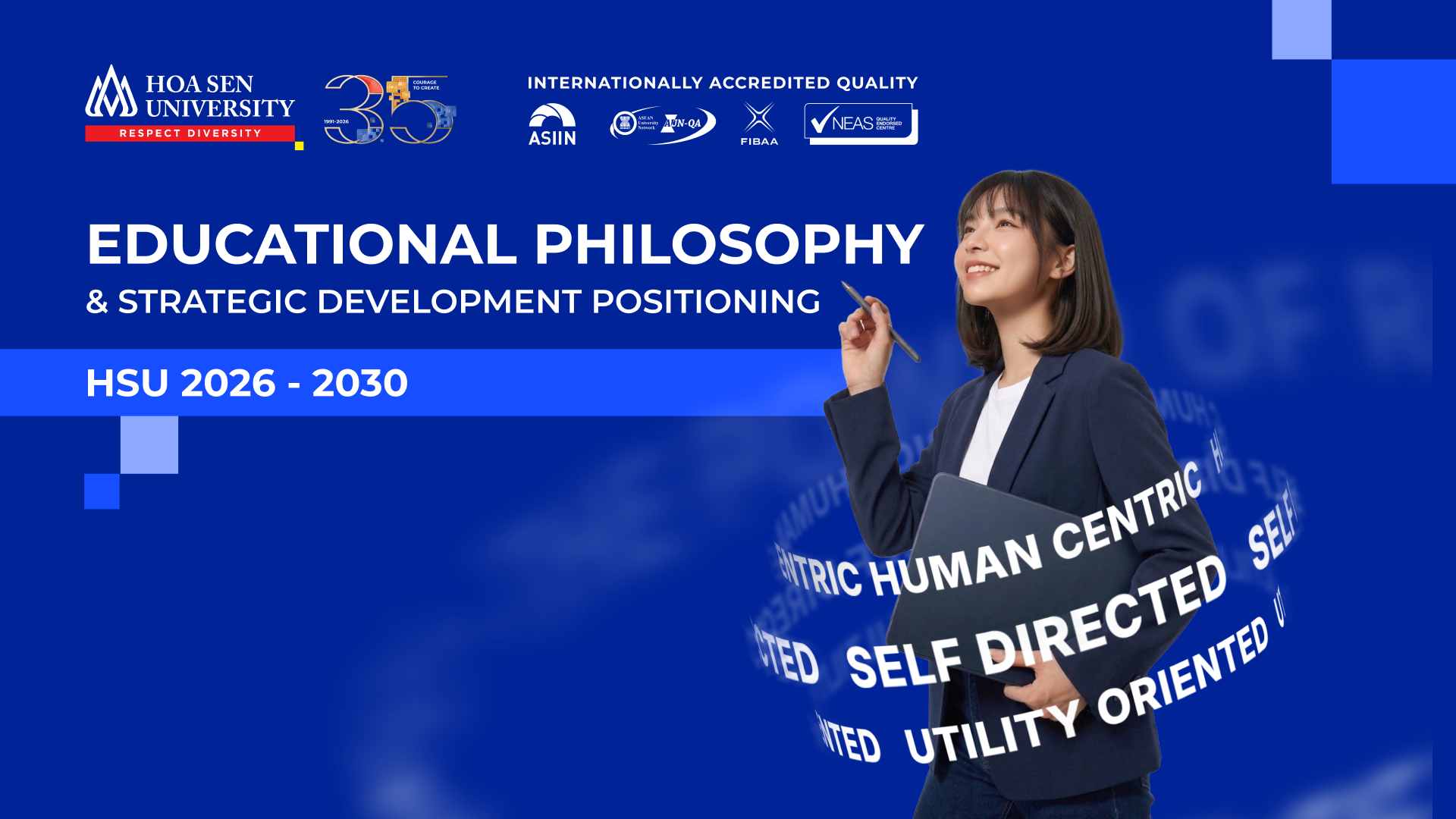 On March 9, 2026, during the Hoa Sen University (HSU) educational philosophy presentation ceremony, Assoc. Prof. Dr. Nguyen Huu Huy Nhut, HSU President, shared the university’s governance framework and strategic direction for the period 2026–2030. HSU’s educational philosophy and development strategy operate on three levels. The first level establishes the University’s foundational philosophy, anchored by three core values: