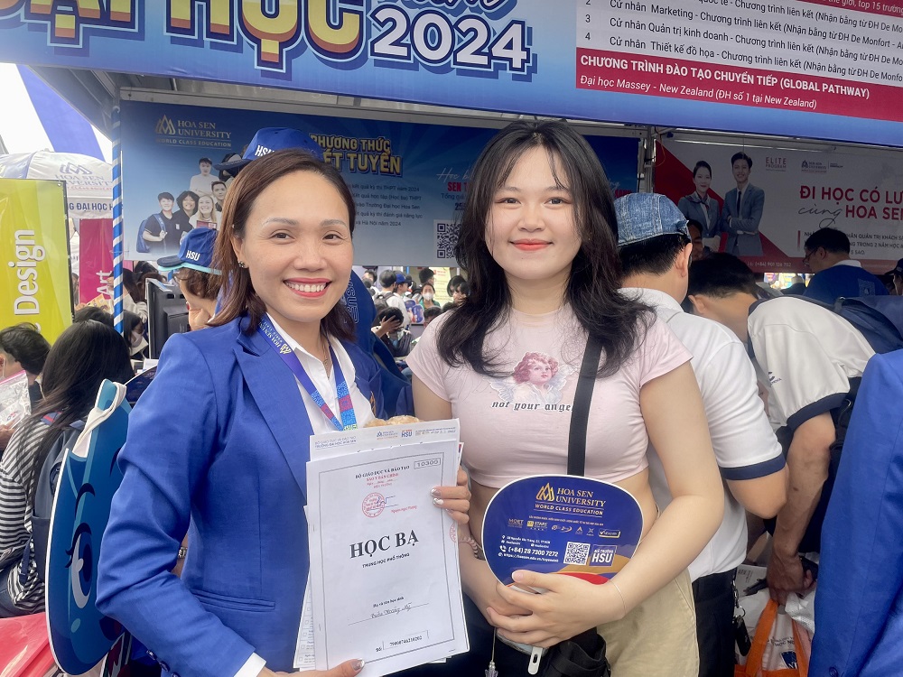 At the festival, many candidates, after being advised on their strengths by teachers and experts, decided to register for admission to the school. Among them, many have researched Hoa Sen in advance and prepared their academic records to “finalize your application” with HSU.