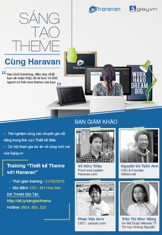 Hơn nữa, hỗ trợ các bạn tiếp cận những công nghệ mới vô cùng linh hoạt và mở rộng, khoa Khoa học và Công nghệ trường Đại học Hoa Sen đã phối hợp cùng công ty CP Giải pháp Công nghệ TMĐT HARAVAN tổ chức buổi training ” Thiết kế Theme với Haravan”. Đây cũng là “trợ lực” quan trọng dành cho các bạn có ý định tham gia cuộc thi “Sáng tạo theme cùng Haravan”.