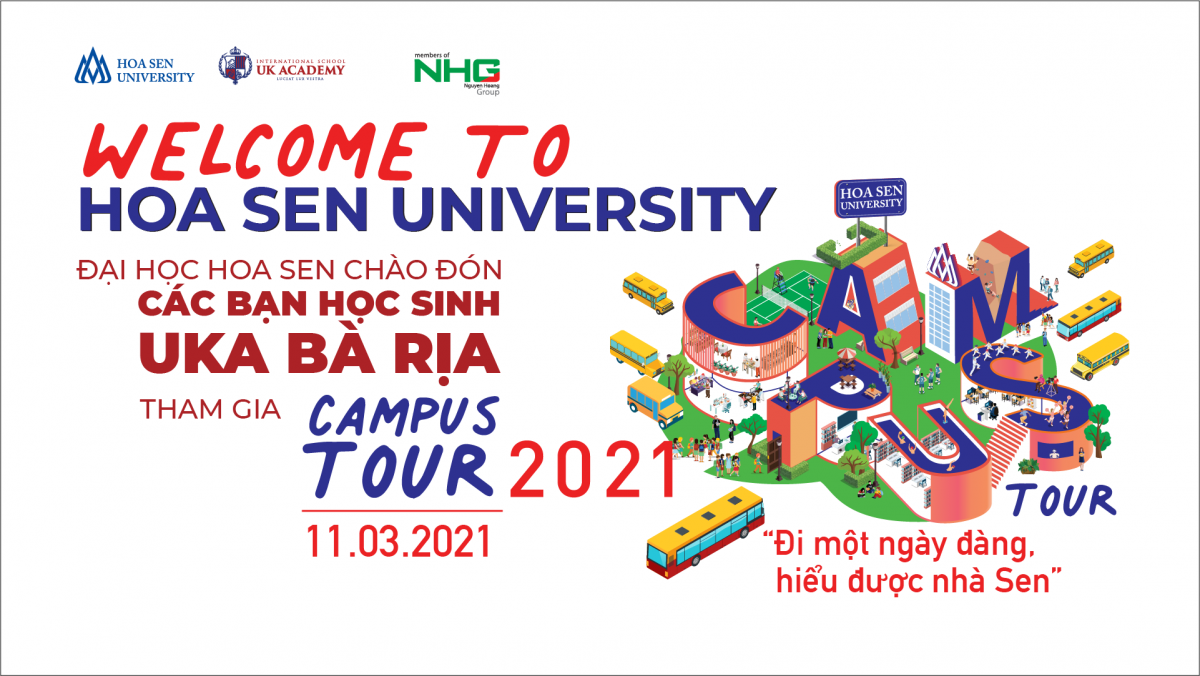 Ngày 11/03/2021, trường Đại học Hoa Sen sẽ chính thức đón hơn 60 học sinh lớp 12 cùng các thầy cô giáo đến từ trường Quốc tế Học viện Anh Quốc (UK Academy) Bà Rịa, là một thành viên của tập đoàn giáo dục Nguyễn Hoàng đến tham quan và trải nghiệm môi trường học tập tại trụ sở Nguyễn Văn Tráng, Q.1.