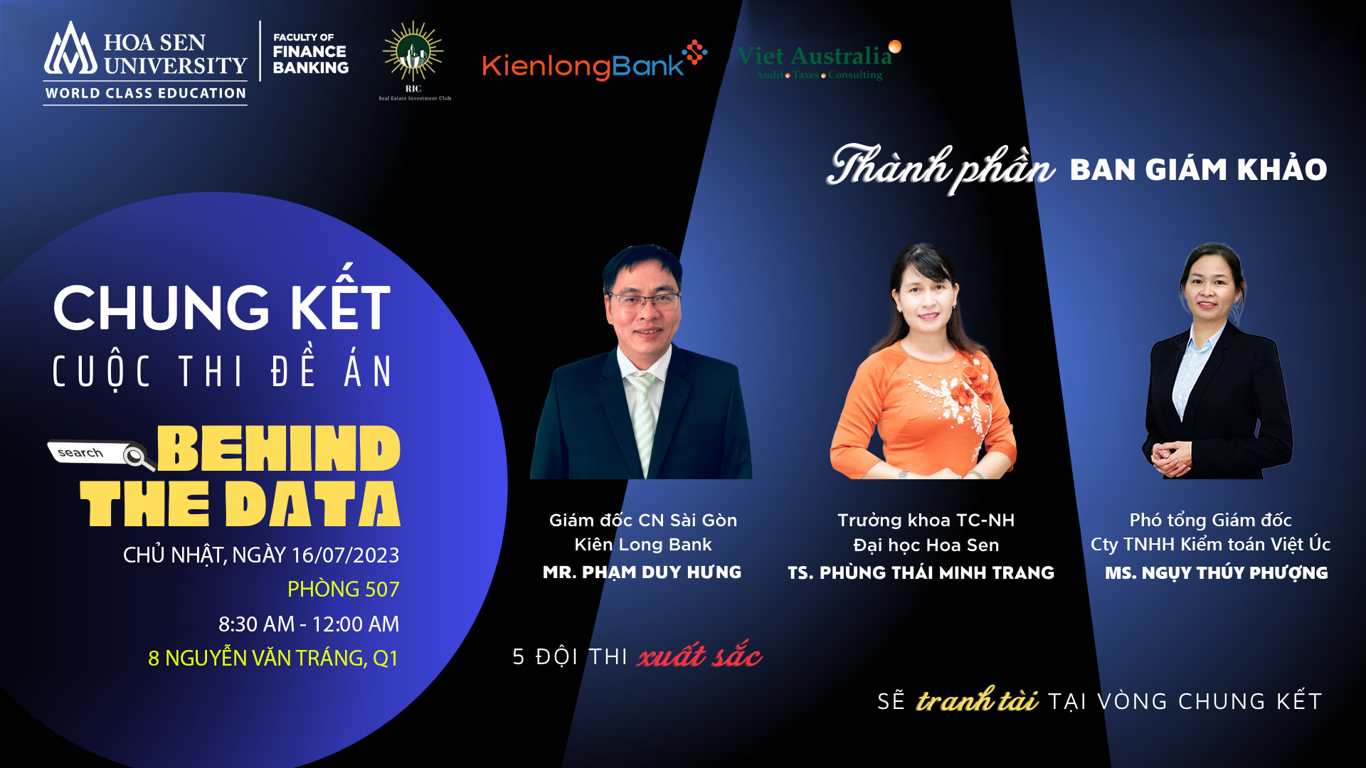 Nhằm hỗ trợ cho các bạn sinh viên có thêm cơ hội thử sức với việc viết bài một bài đề án theo hướng nghiên cứu thực tiễn. Cuộc thi “Behind the data” được tổ chức bởi Khoa Tài chính Ngân hàng với sự tham gia của các vị Ban giám khảo :