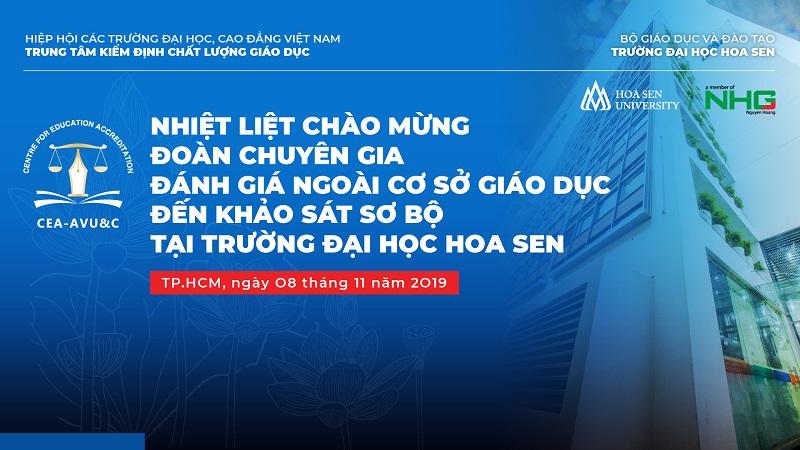 Trường Đại học Hoa Sen chào mừng Đoàn chuyên gia đánh giá ngoài khảo sát sơ bộ trường Đại học Hoa Sen.