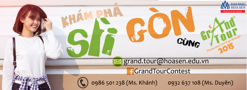 Grand Tour Campaign 2015 với chủ đề “Khám Phá Sài Gòn” với nội dung hấp dẫn đã thu hút rất nhiều bạn học sinh, sinh viên tham gia. Để giới thiệu rộng rãi hơn đến các bạn, chương trình sẽ tổ chức buổi họp báo Open day – Khám Phá Sài Gòn cụ thể như sau: