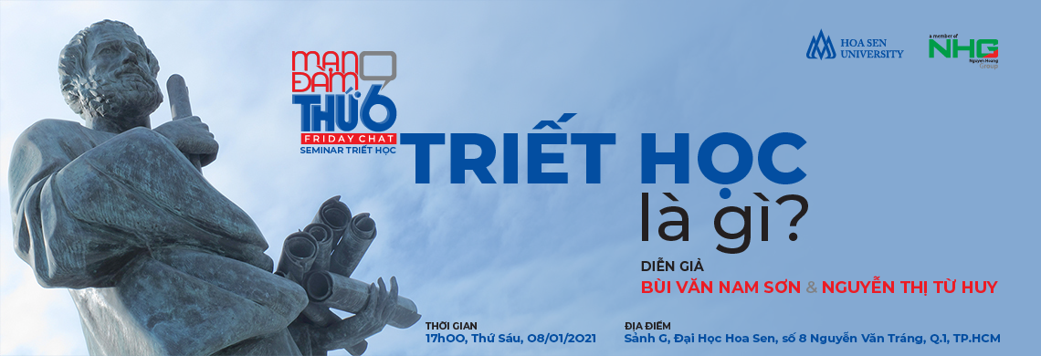 Chủ đề “Triết học là gì?” mở đầu cho chuỗi Seminar Triết học, chương trình học thuật định kỳ của Bộ Môn Triết học, đồng thời cũng mở đầu cho hoạt động Mạn Đàm Thứ Sáu – Friday Chat, một sinh hoạt tri thức và văn hóa dài hạn do Ban Tu Thư chủ trì, sẽ diễn ra vào thứ sáu hàng tuần tại Đại học Hoa Sen.