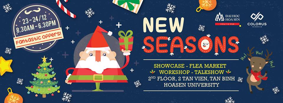 NEW SEASONS là sân chơi cho những ai thích không gian vui nhộn, yêu sáng tạo và gặp gỡ giao lưu. Hơn nữa, các hoạt động văn hóa của NEW SEASONS đặc biệt được tạo ra bởi các đồ án của các bạn sinh viên chuyên ngành Thiết kế Đồ Họa của trường đại học Hoa Sen. Là nơi trao đổi kinh nghiệm, chia sẻ thông tin, kỹ năng và thị hiếu thông qua các sản phẩm của các đồ án trưng bày.