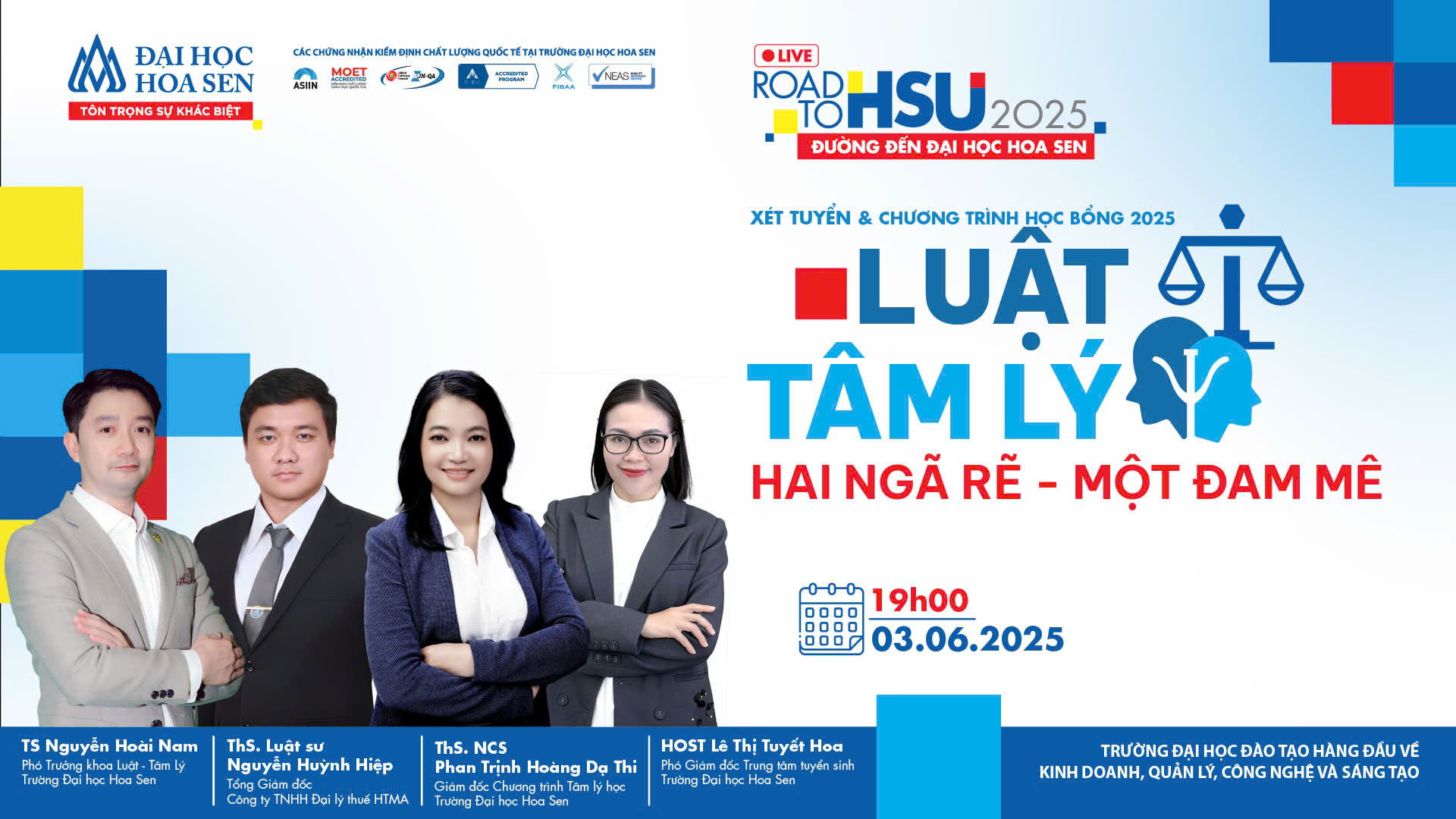 [LIVESTREAM: ROAD TO HSU 2025] Đường đến Đại học Hoa Sen #4: Xét tuyển & Chương trình học bổng 2025 | Khoa Luật – Tâm lý: Hai ngã rẻ – Một đam mê