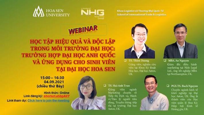Webinar: “Học tập hiệu quả và độc lập trong môi trường đại học: Trường hợp Đại học tại Anh quốc và ứng dụng cho sinh viên Hoa Sen”