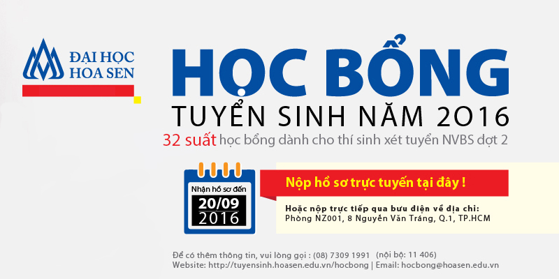 Dự tuyển học bổng tuyển sinh 2016 – dành cho thí sinh xét tuyển NVBS