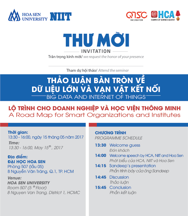 - 14h00 – 14h15 Phát biểu của Ông Vũ Anh Tuấn – đại diên HCA, Tổng thư ký Hội Tin học TPHCM