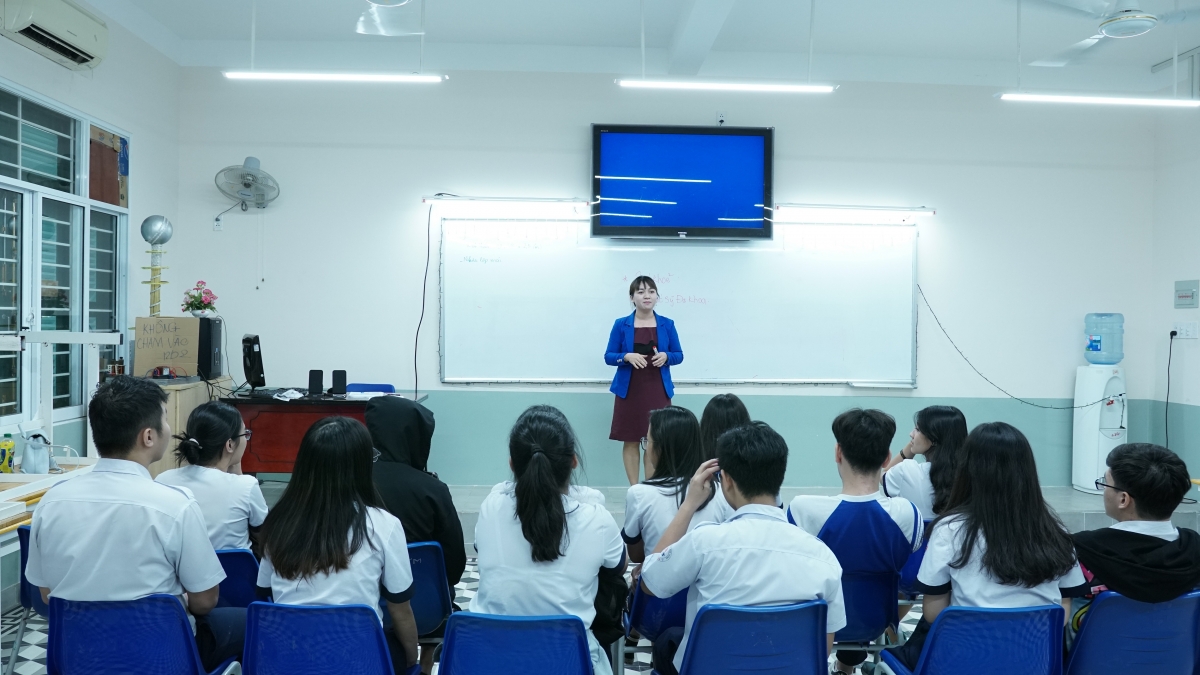 Giảng viên Đại học Hoa Sen tư vấn định hướng nghề nghiệp tại lớp cho học sinh lớp 12